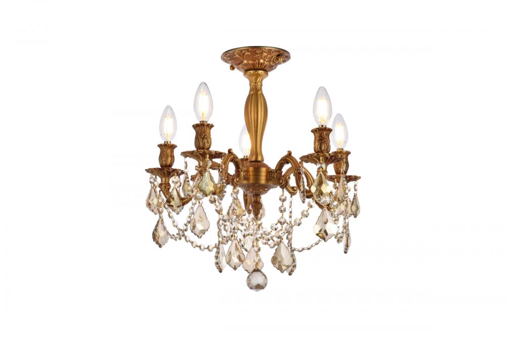 Rosalia 5 light French Gold Flush Mount Golden Teak (Smoky) Royal Cut Crystal