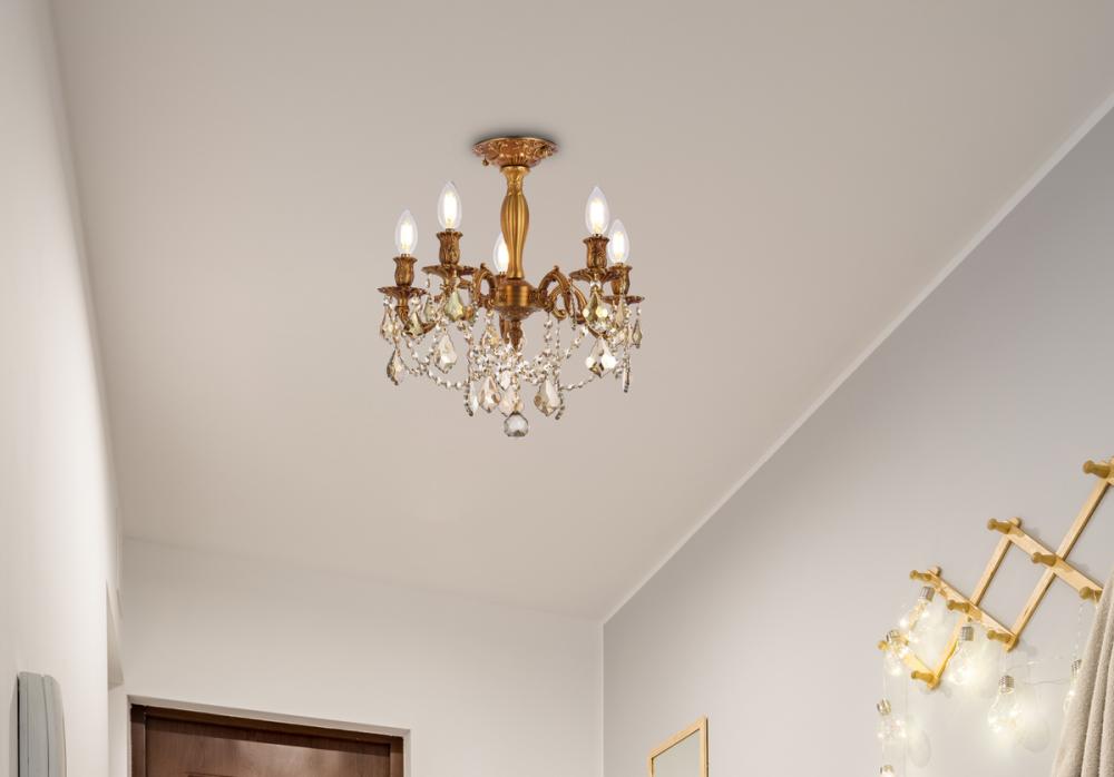 Warm, brilliant light is created by 5 light bulbs. (not included)