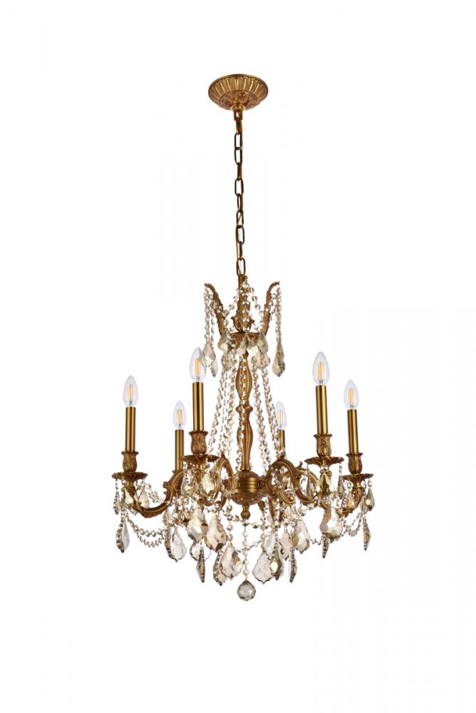 Rosalia 6 light French Gold Chandelier Golden Teak (Smoky) Royal Cut Crystal