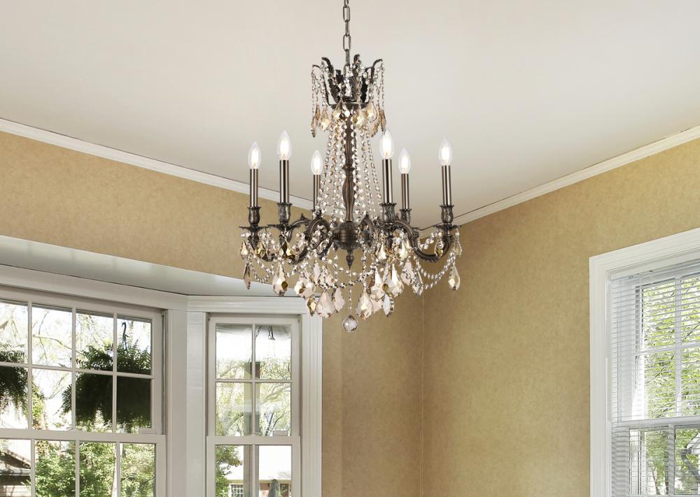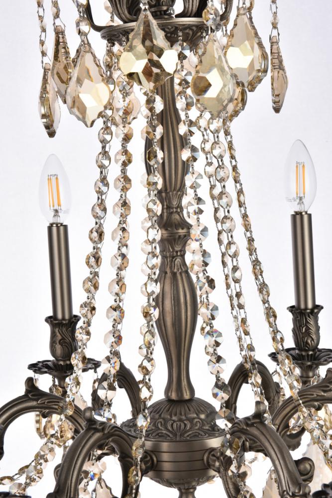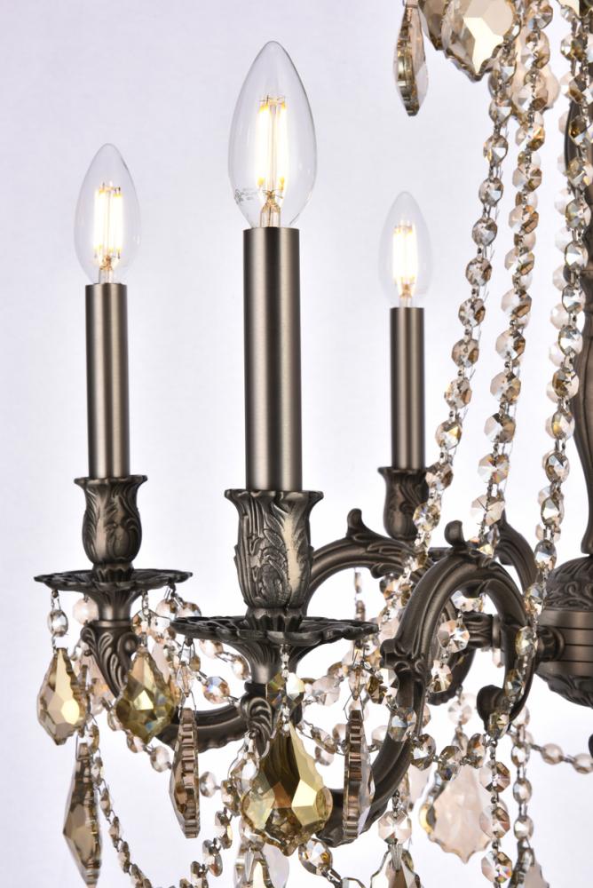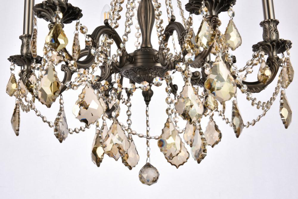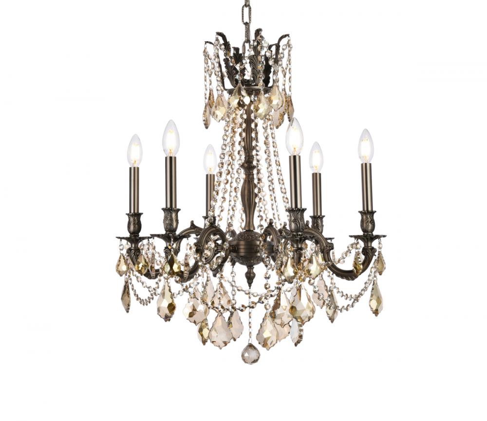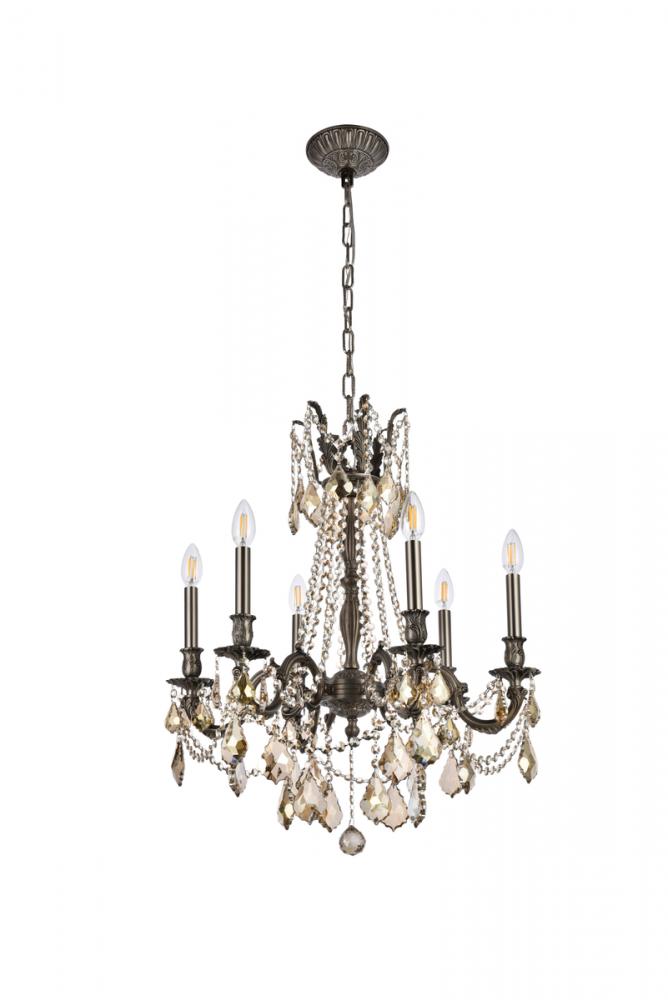 Rosalia 6 light Pewter Chandelier Golden Teak (Smoky) Royal Cut Crystal