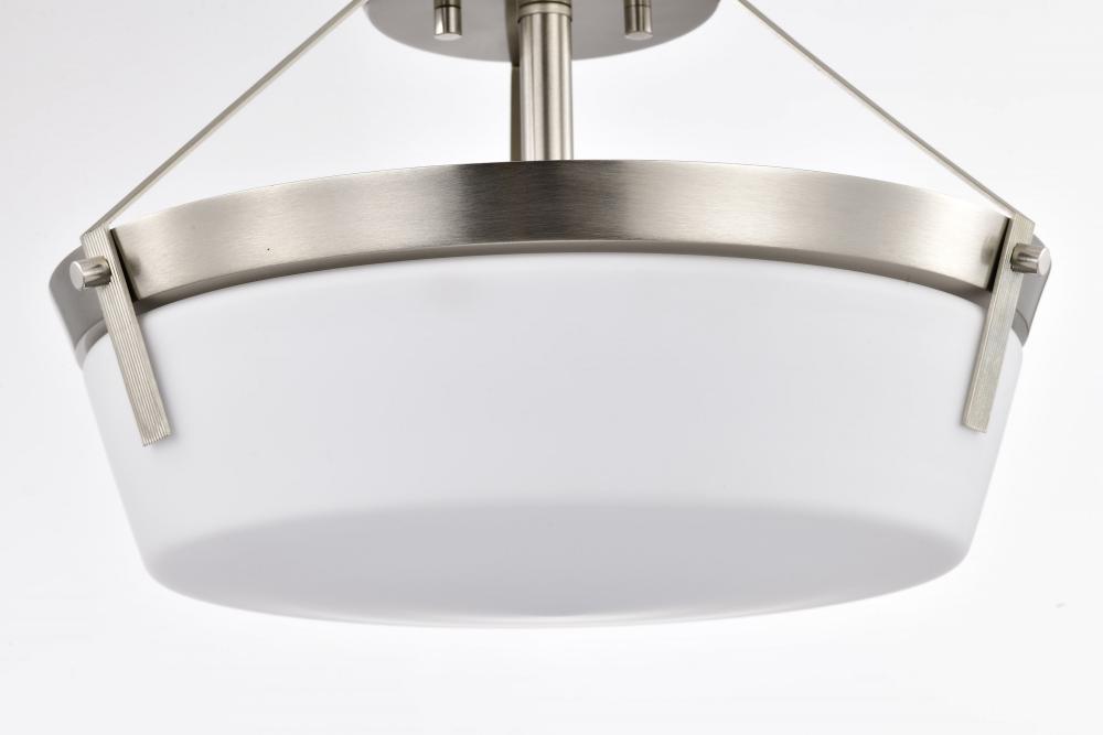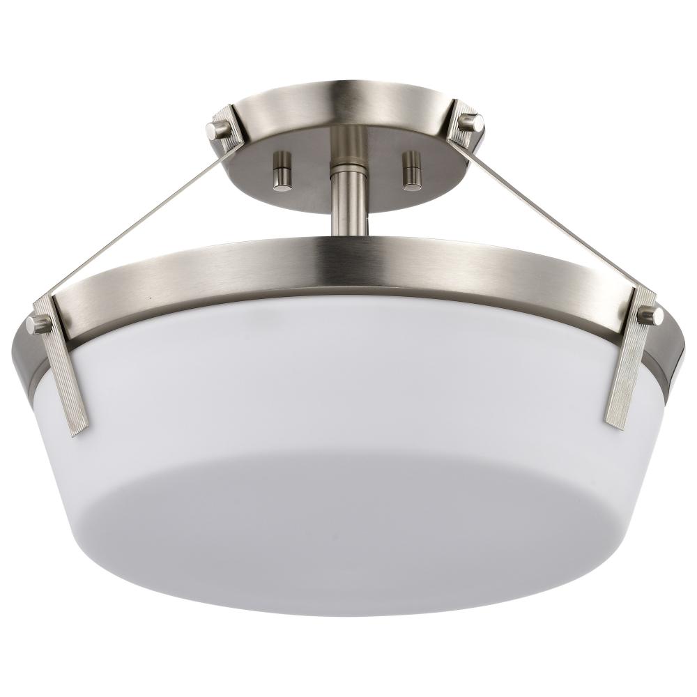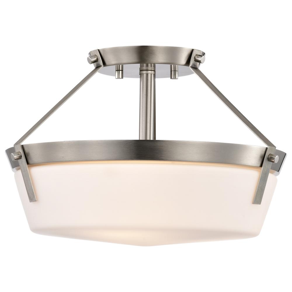The Rowen 60-7763 semi-flush mount is a versatile lighting fixture that exudes elegance and sophistication. The brushed nickel finish gives the fixture a chic and inviting look, while the etched white glass diffuses the light to create a soft and ambient g