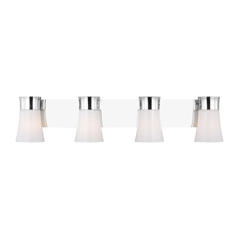 Made to coordinate across a broader range of bath hardware and design styles, this light breathes new life to its traditional shape with milk glass shades and striking, modern finishes
