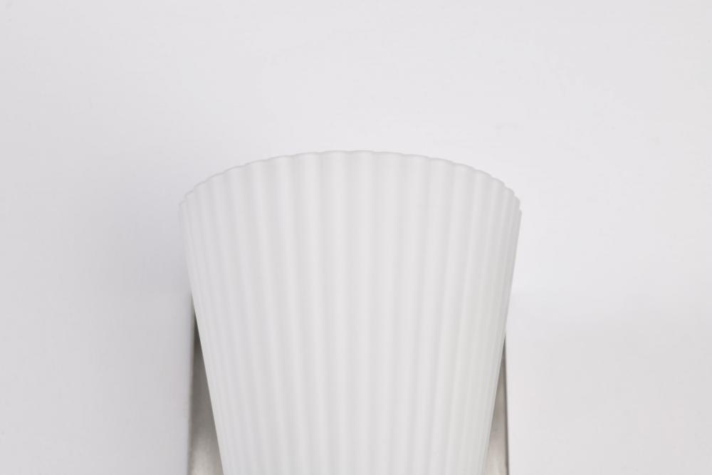 Indulge in the glamour of the Royale 60-8731 one light vanity fixture, where sleek Art Deco silhouettes meet modern refinement. The satin white pleated glass adds texture and sophistication, diffusing light with a soft, radiant glow. Finished in brushed ni