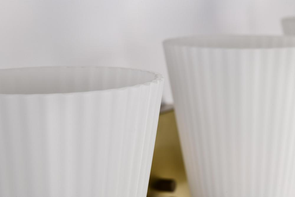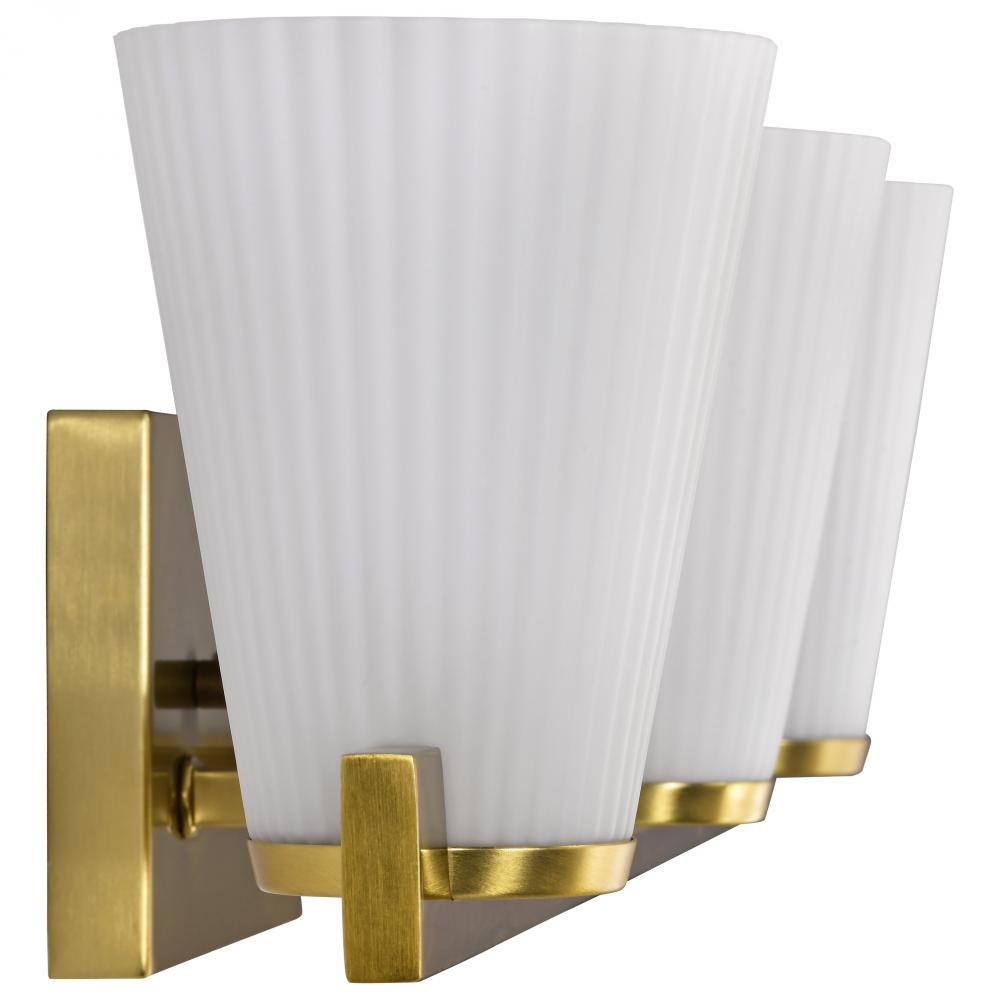 Indulge in the glamour of the Royale 60-8733 three light vanity fixture, where sleek Art Deco silhouettes meet modern refinement. The satin white pleated glass adds texture and sophistication, diffusing light with a soft, radiant glow. Finished in brushed