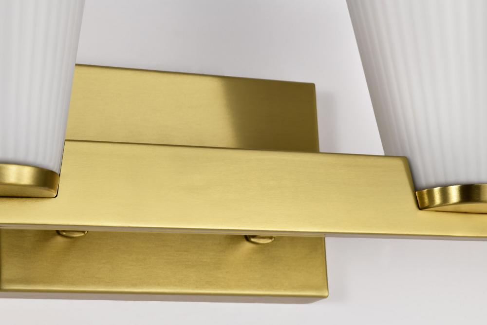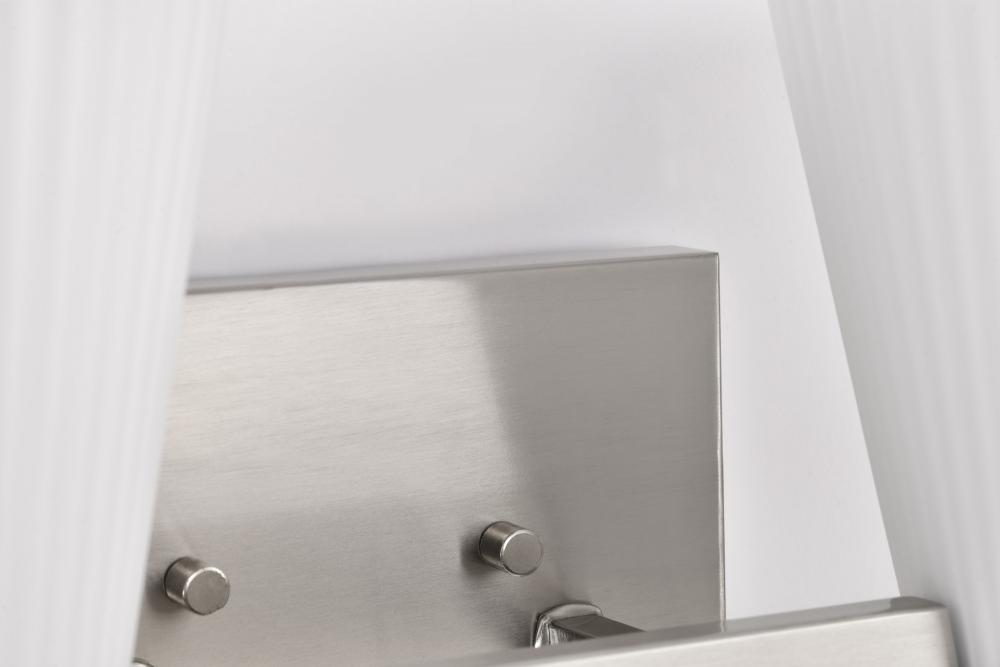 Indulge in the glamour of the Royale 60-8734 four light vanity fixture, where sleek Art Deco silhouettes meet modern refinement. The satin white pleated glass adds texture and sophistication, diffusing light with a soft, radiant glow. Finished in brushed n