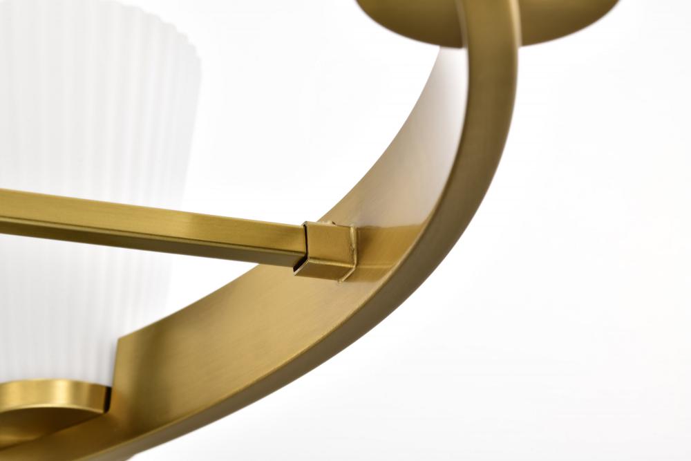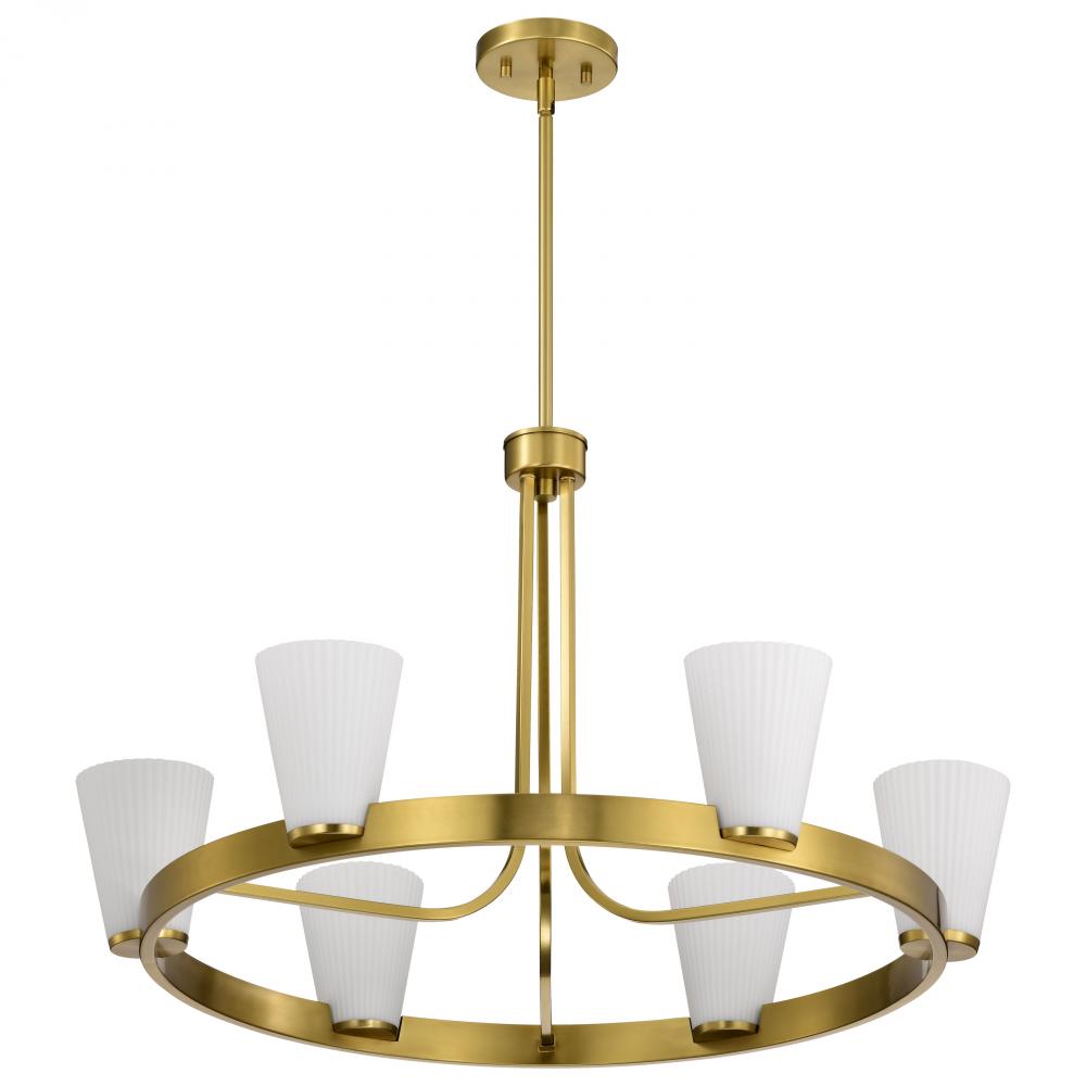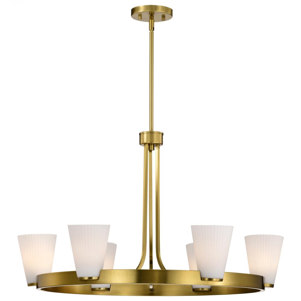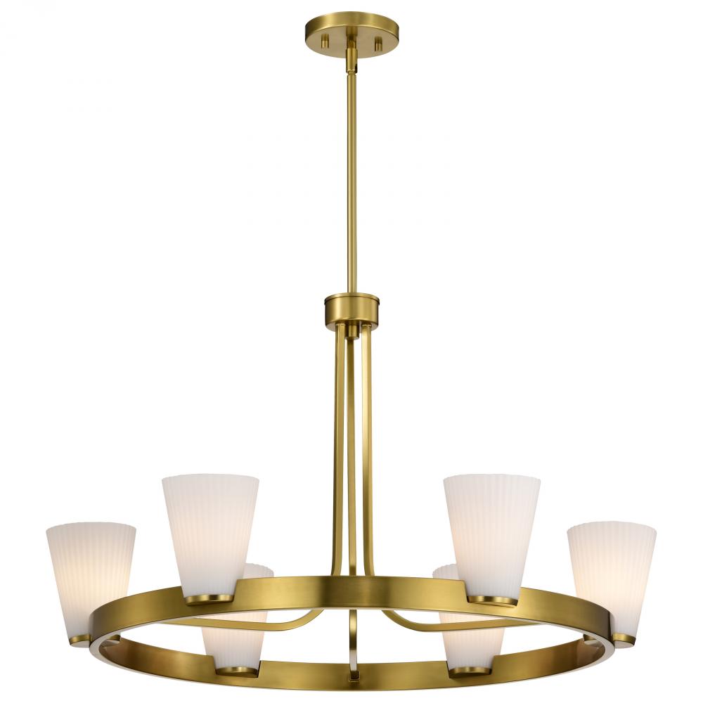 Royale; 6 Light Chandelier; Burnished Brass Finish; Ribbed White Glass