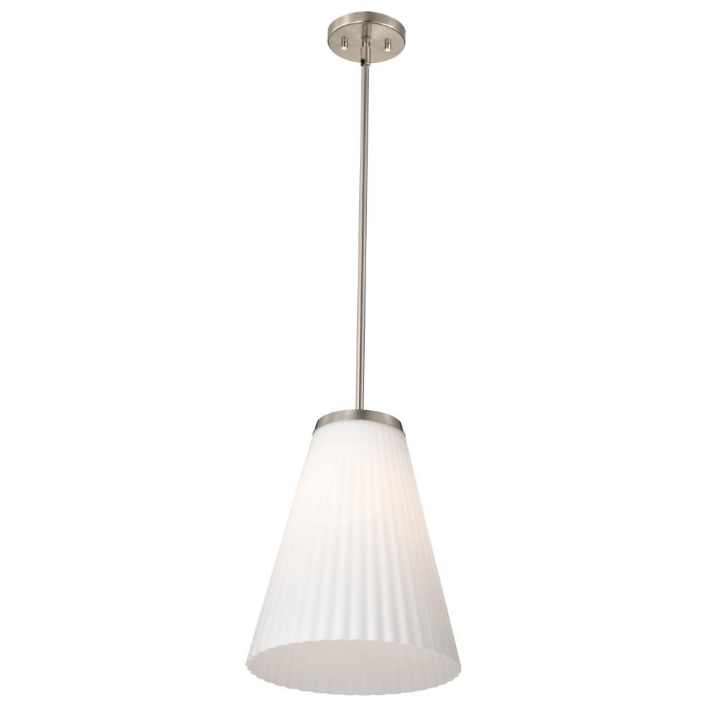 Royale; Large Pendant; Brushed Nickel Finish; Ribbed White Glass