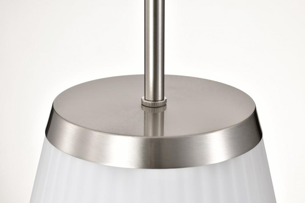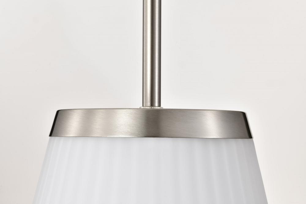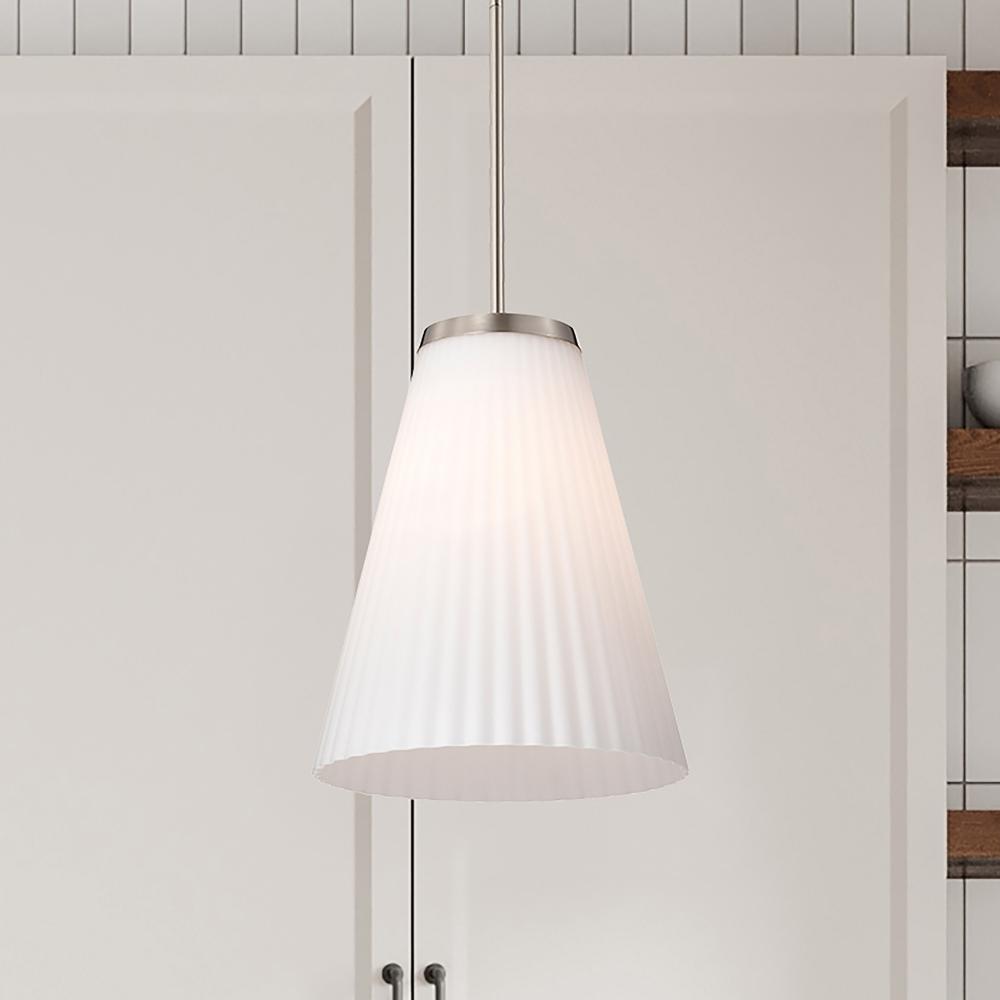 Finished inBrushed Nickel with Ribbed White Glass