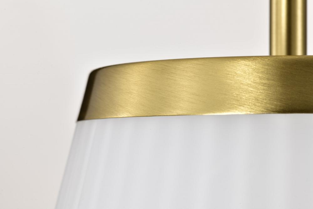 Royale; Large Pendant; Burnished Brass Finish; Ribbed White Glass