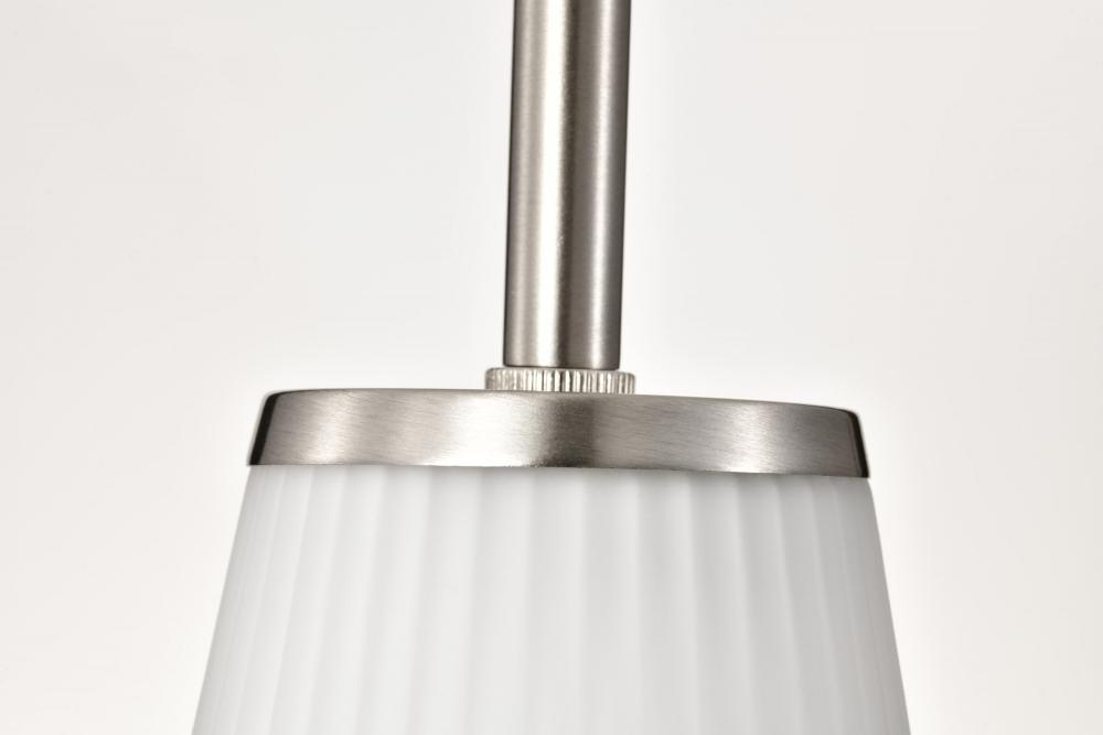 Royale; Mini Pendant; Brushed Nickel Finish; Ribbed White Glass