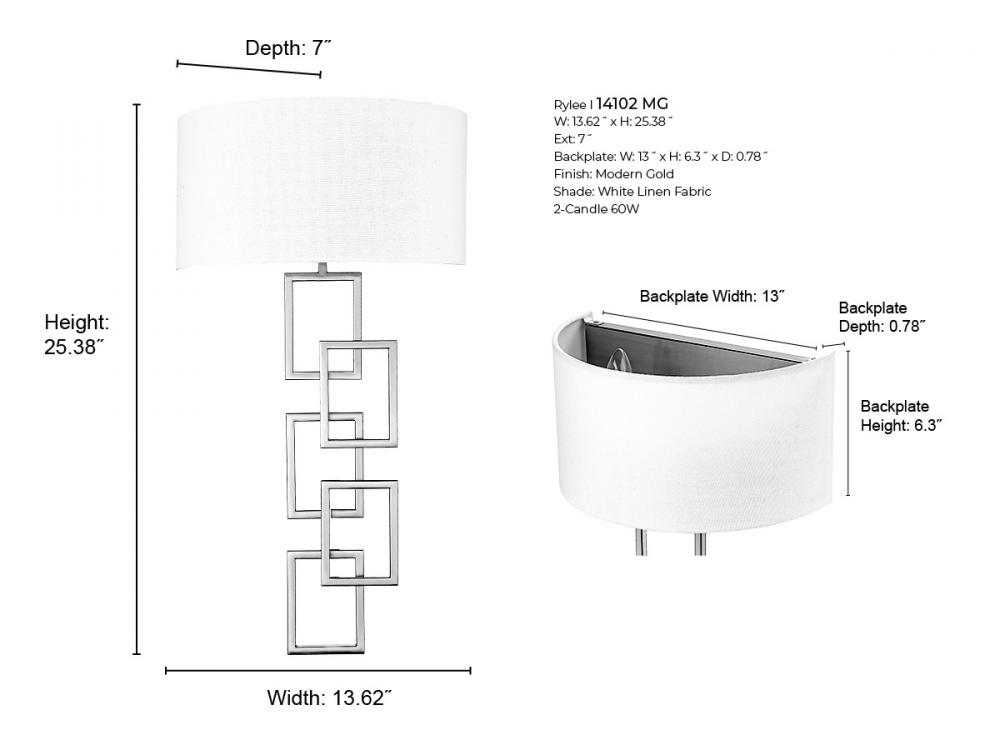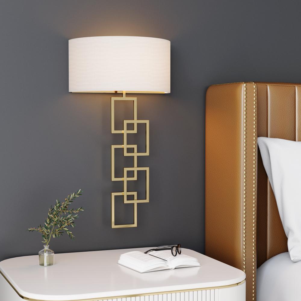The Rylee Collection of half-wall sconces is a sophisticated blend of textures and lines, resulting in simple yet refined accent lighting. Choose between the decorative double-marquis design in matte black, brushed nickel, and vintage brass, or the interlocking square base in modern gold. Luxurious half-moon linen shades complement both designs. The modern-transitional design makes it an excellent addition to any hall or foyer.