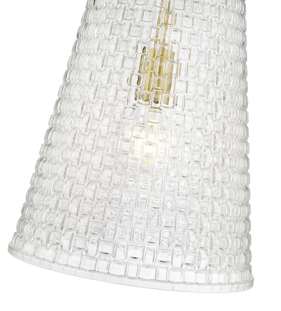 The Saben Family of lighting is pure glamour, and an excellent choice for any interior scheme from transitional to Art Deco. Options include pendant, vanity, sconce, and semi-flush mount fixtures. The basketweave textured, clear glass shades create a crystal-like effect against the sleek designs available in matte black, modern gold, polished nickel, brushed nickel, or vintage brass.