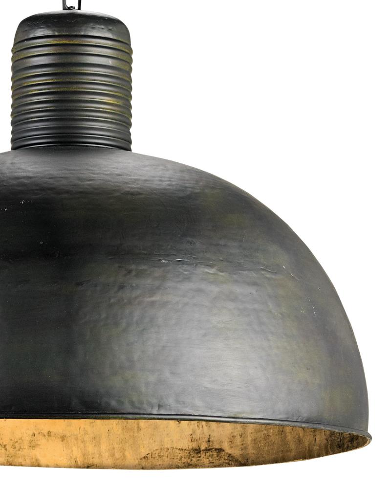 Articulate and resolute, the Saga Pendant tells its industrial-style tale through the strong sensibilities of its materials. A bold darkened black steel finish on the outside of the shade takes the fixture in one direction while the golden glow of the interior adds intrigue to this simple design. This pendant will be an epic addition to any number or interiors and will be the final flourish is an urban oasis designed to exude a rough luxe feel.