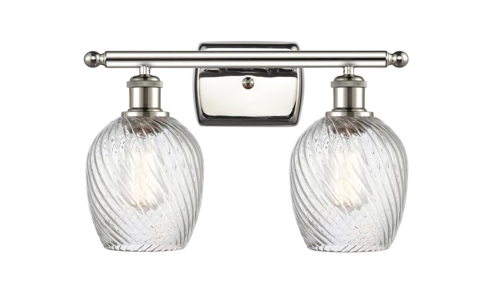 Salina - 2 Light - 16 inch - Polished Nickel - Clear Spiral Fluted Shade - Bath Vanity Light