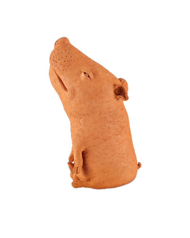 Whimsical in terracotta, Sam the Mutt is a sculpture by the emerging Thai artist Nhut Nhathawut. with an expression that is so lifelike that it feels he may bark at any moment, there are a number of artisanal aspects to the canine sculpture. This includes the obvious strokes of the artist's tools that play along the surface of the dog's body. Brownlee Currey had some fun with this mixed-breed, describing his reality as, "There may be some bulldog in there, but Sam’s mental and physical acuity is more akin to a potato than a sporting breed."