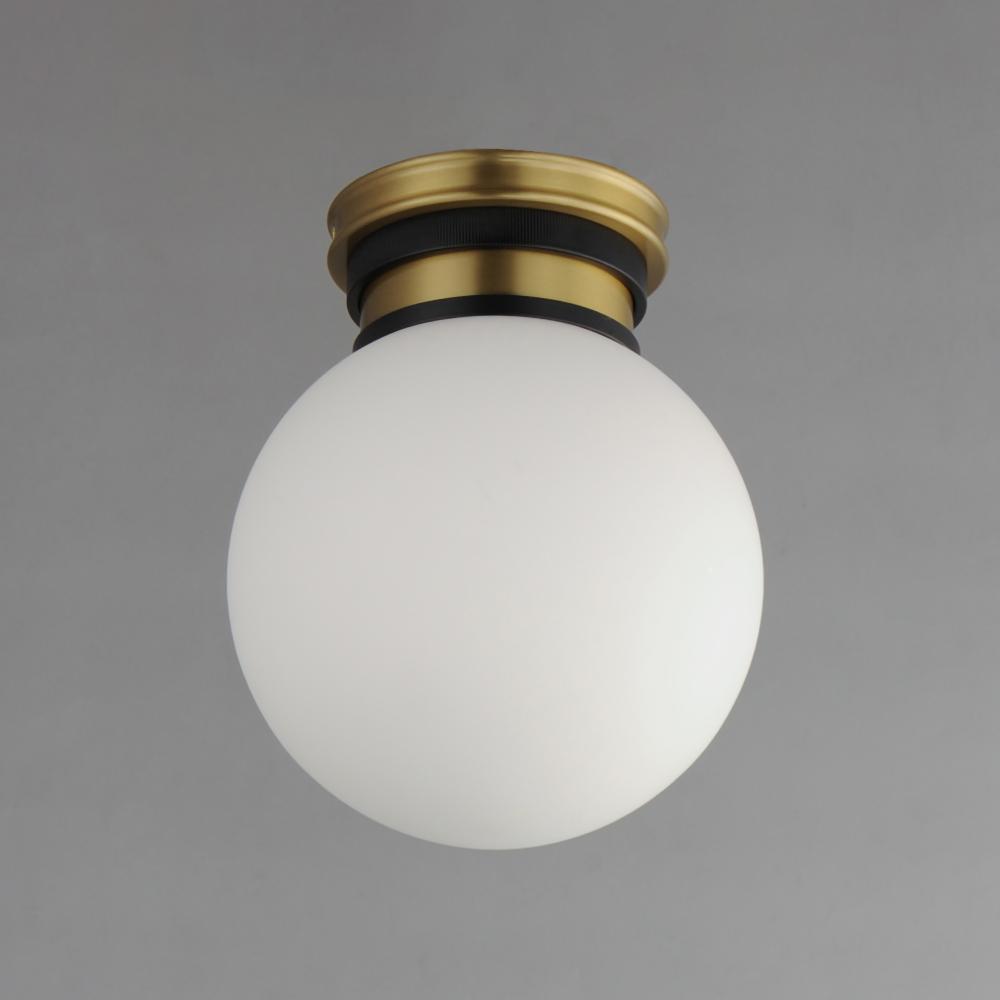Inspired by the seaside California home that once belonged to a turn-of-the-century celebrity tycoon, the San Simeon flush mount and wall sconce embrace vintage charms using Satin White globes fastened to modernized columns with stepped details in Black an
