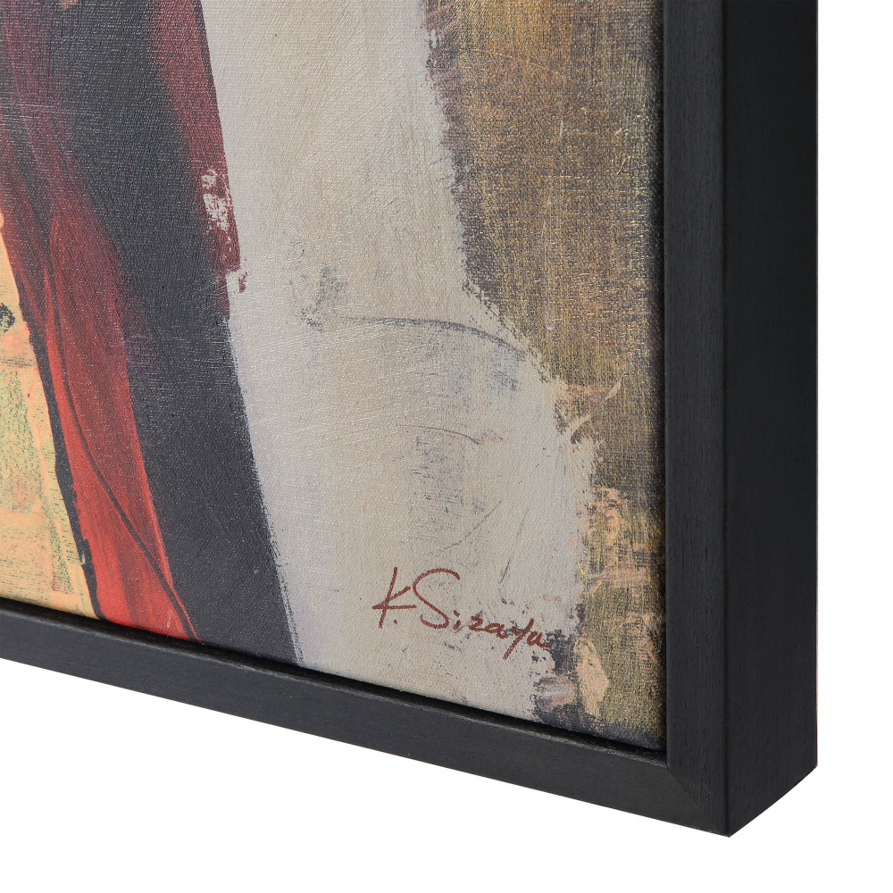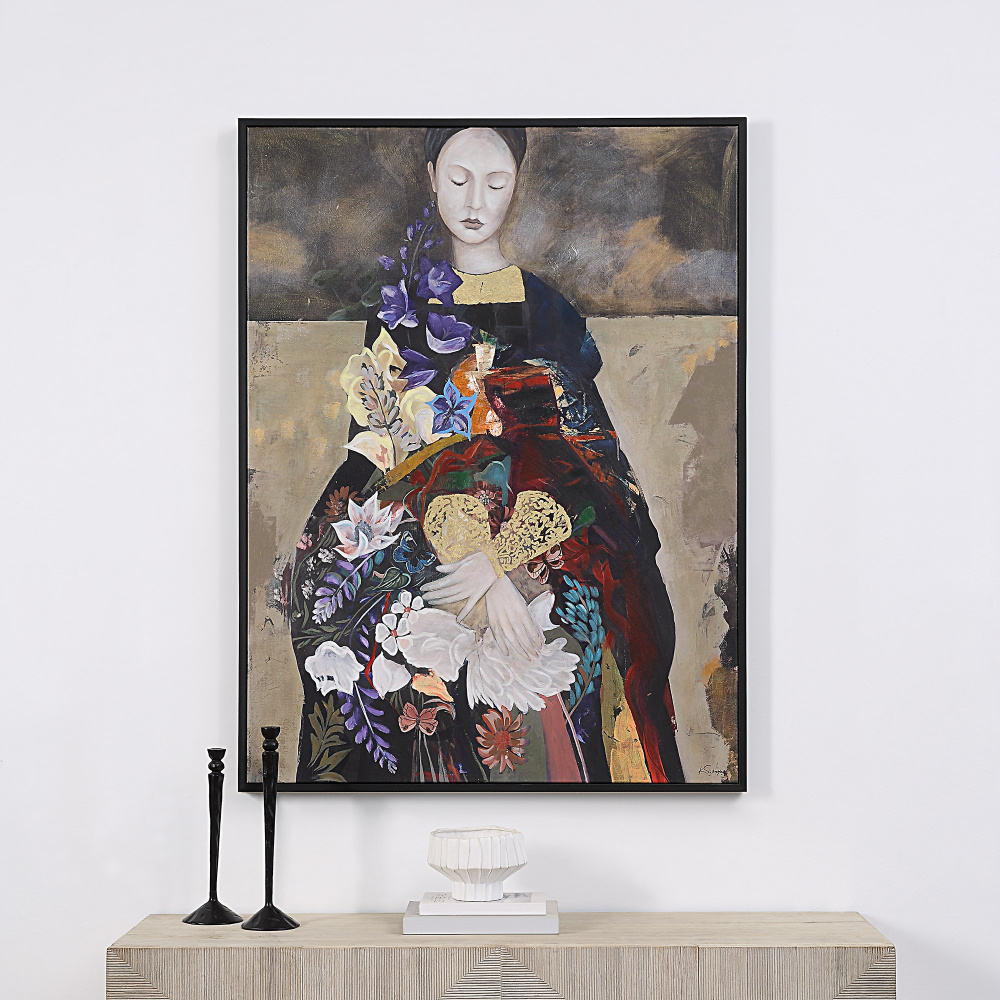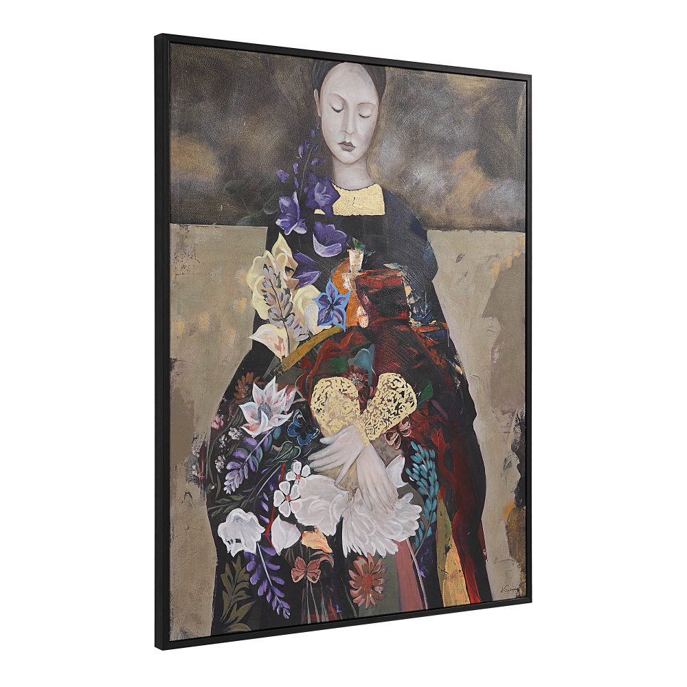 An enchanting vision of creativity and precision, this canvas art painting doesn't simply add accessory to an interior; it allows the space to tell a story. A solid black frame allows the intricate details like gold leaf texture to take the spotlight and provides more arrangement options. This framed canvas is well suited for both the eclectic and the vibrant modern home.