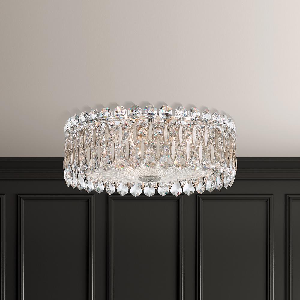 Sarella 3 Light 120V Flush Mount in Antique Silver with Clear Crystals from Swarovski
