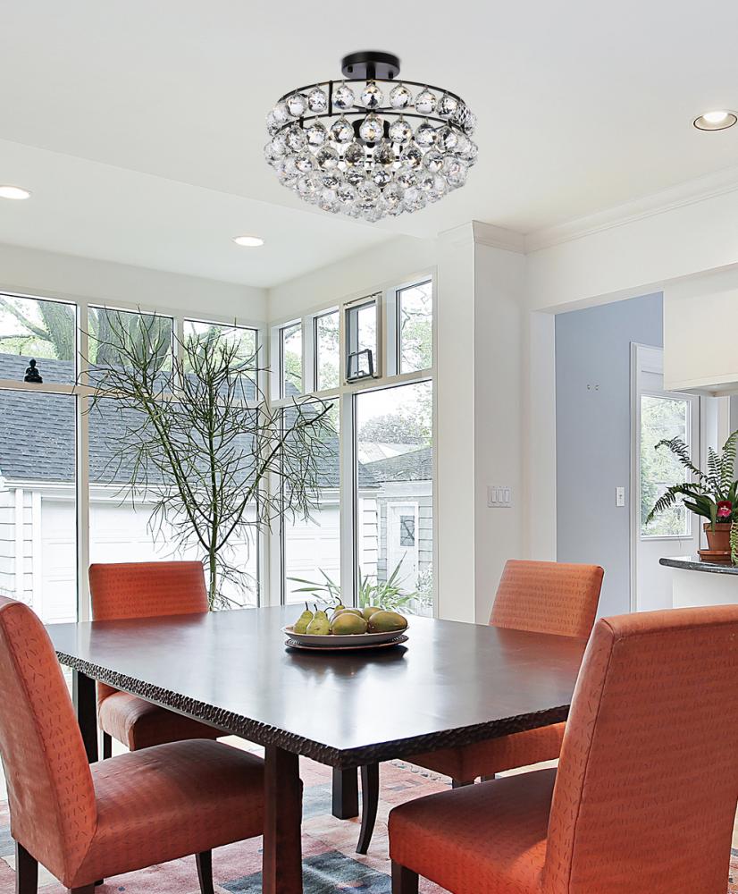 Install this flush mount in any room to give an elegant look. This stunning light features hand painted finish and clear brillant crystals which gives a classy look. Set a cozy atmosphere when you switch on this dazzling fixture and captivate your guests.