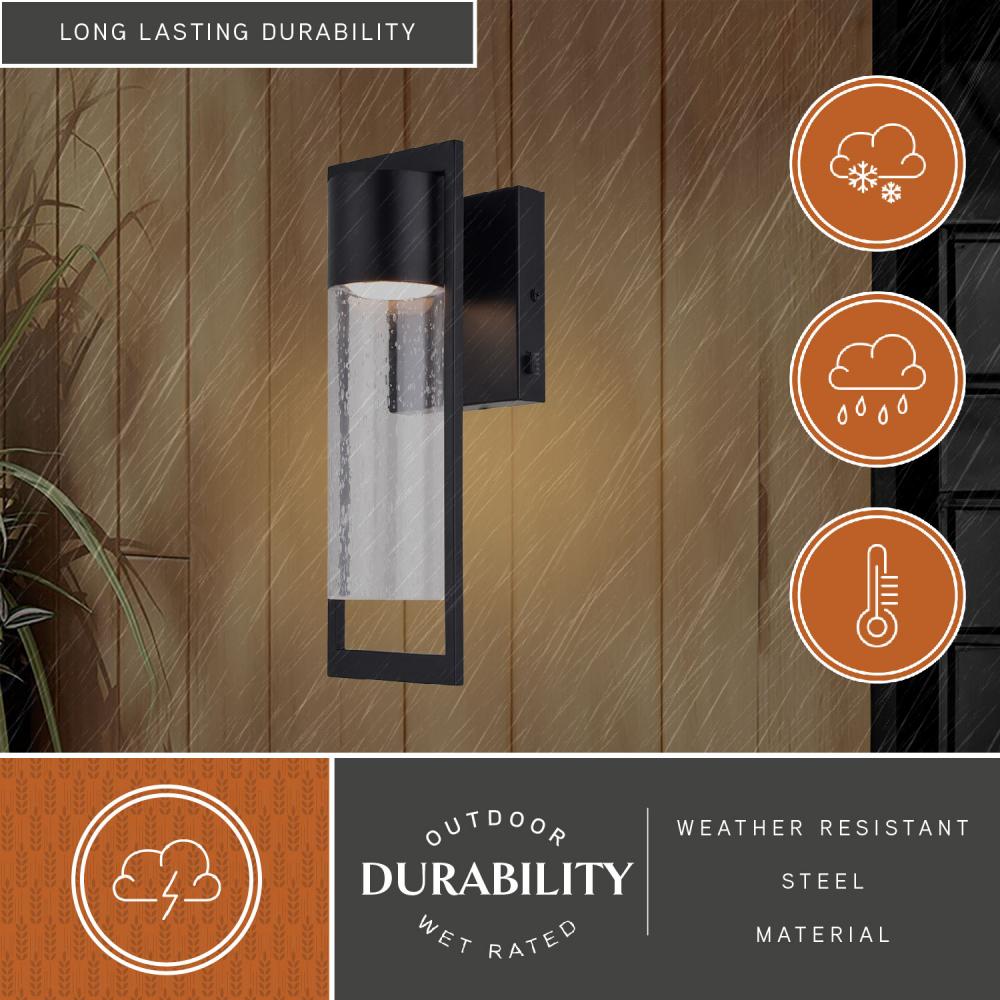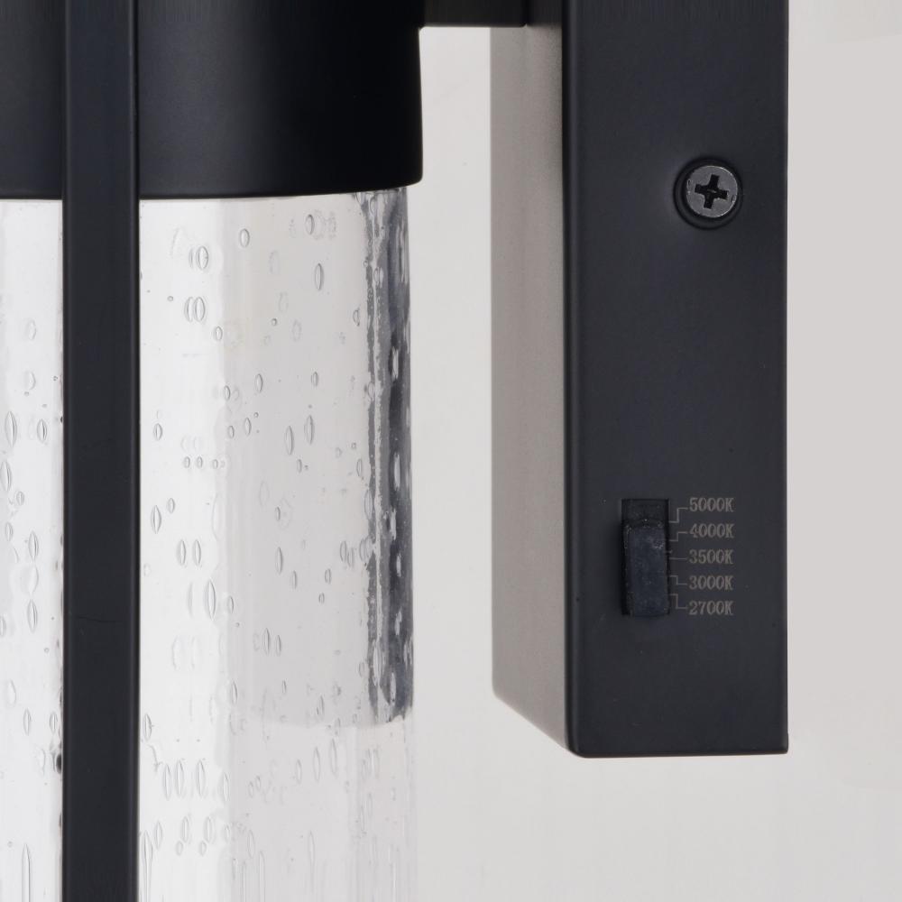 The Sawyer collection makes a dramatic statement with its chic contemporary style. Its clear cylinder glass is surrounded by a sleek, minimal matte black frame, creating maximum impact. This outdoor wall light is ideal for your porch, entryway, garage, or any other outdoor area of your home. Equally suited for indoor use such as the bath, hallway, or kitchen spaces. Includes five adjustable CCT settings ranging between 2700K to 5000K, enabling you to create your preferred ambiance wherever you might install it.
