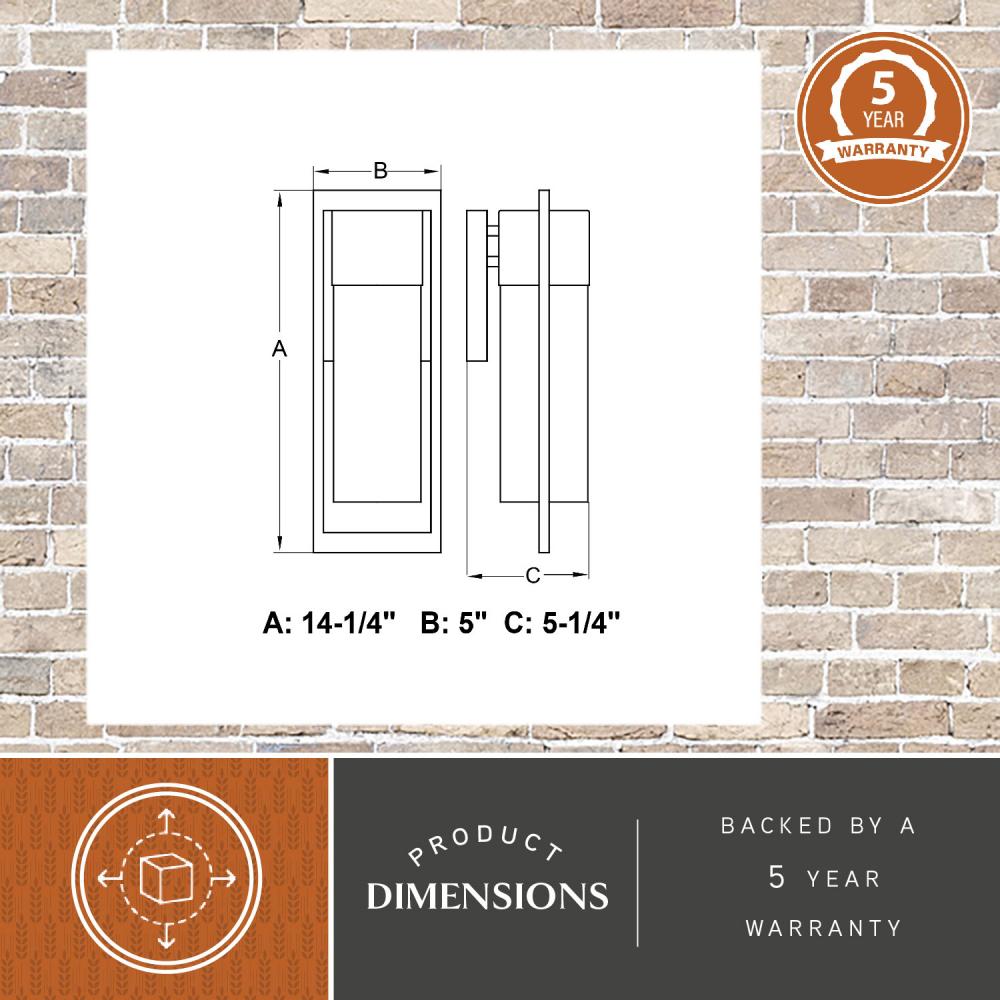 5-in W x 14.25-in H x 5.25-in D with 5-in W x 6-in H backplate