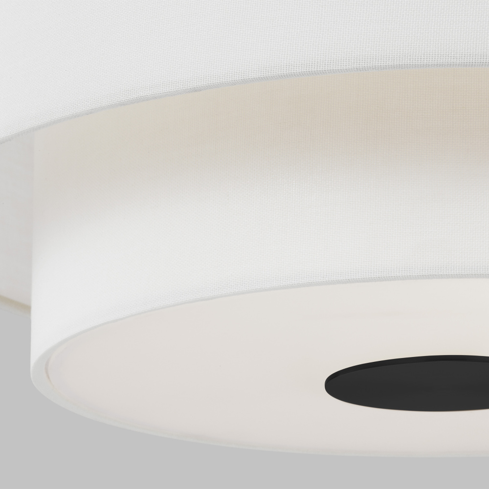 Inspired by kate spade's new york whimsical geometry and playful lines, Sawyer has a striking silhouette with graphically tapered shades. The Sawyer flush mount by kate spade new york in midnight black is a wide playful pendant with arched lines and wide, graphically tapered shades. This simple and graphic pendant would be great over a dining table or nook, as well as in a living room scenario.