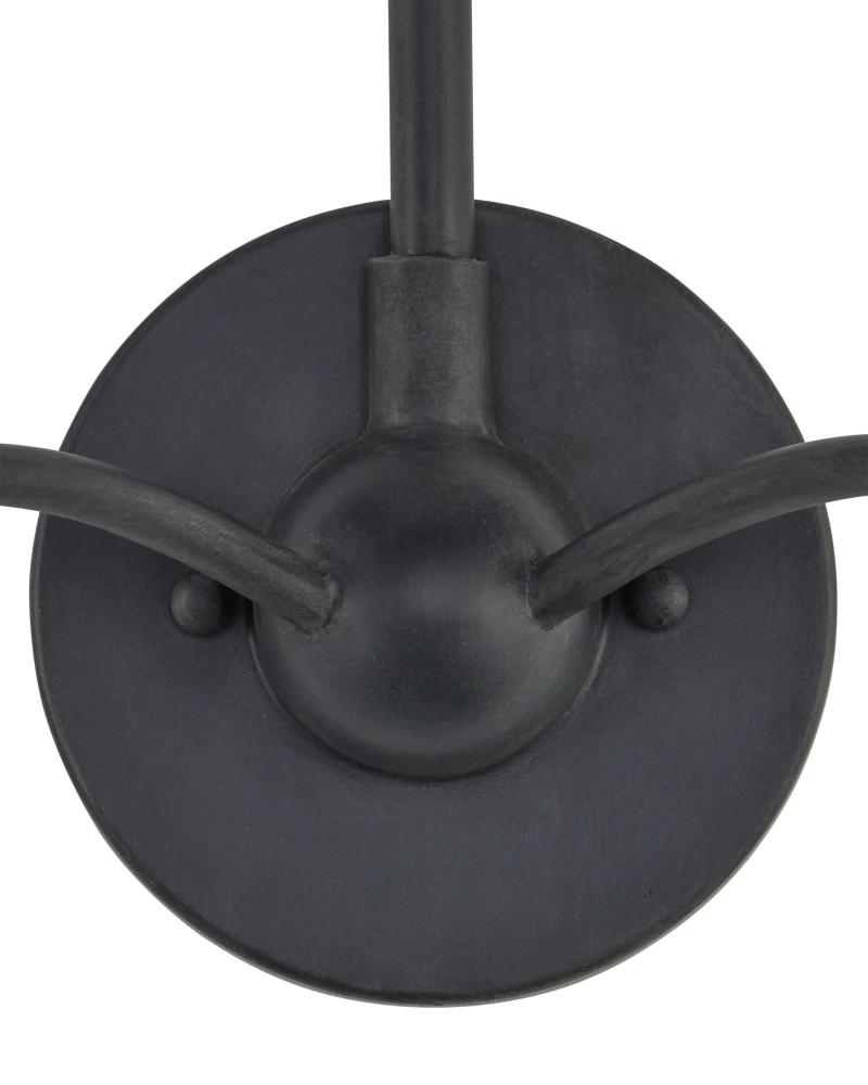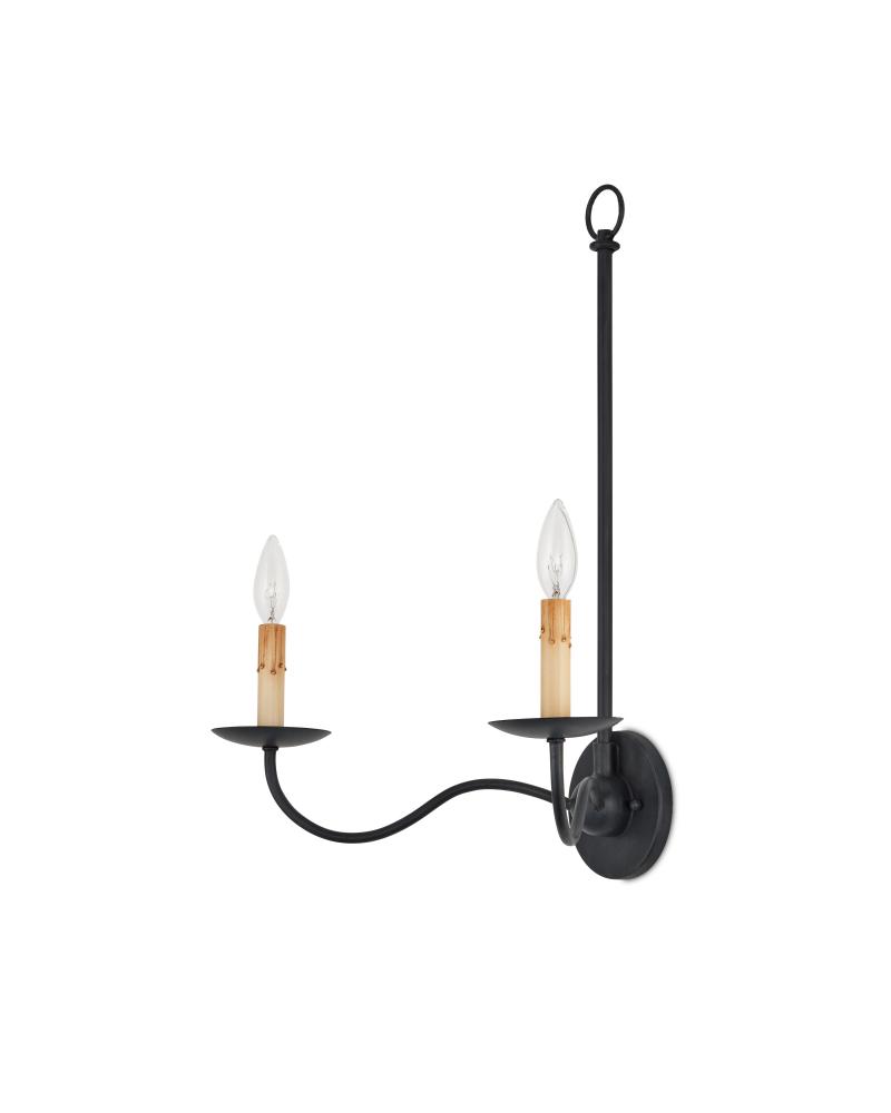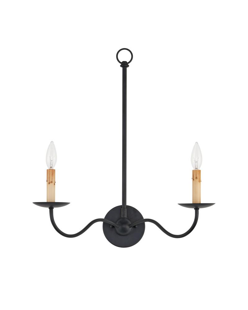 The Saxon Double-Light Black Wall Sconce harkens back to the early days of design in America with its nostalgic references. The Zanzibar black finish, its slender lines, and its candle-sleeves with their faux drips make this black sconce a terrific choice for modern farmhouse interiors, and its shape is perfect for even somewhat narrow walls where slenderness is a must.
