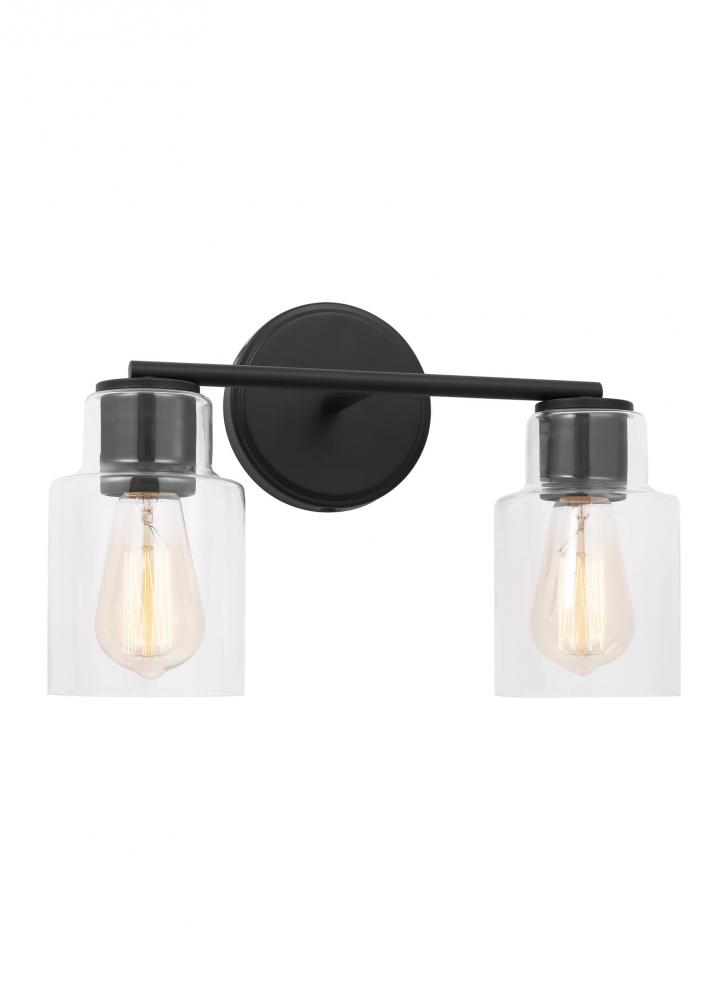 Add a bright burst of light where you need it most with the classic Drew & Jonathan Sayward Two Light Wall / Bath Sconce, featuring a round metal backplate and clear glass shades. Made to coordinate across a broader range of bath hardware and design styles, the Sayward is available in four popular finishes, Brushed Steel, Chrome, Midnight Black, and Satin Brass. This light looks great on its own or installed above a bathroom vanity, and the glass shades make it ideal for filament bulbs. This fixture may be mounted in the up or down position, and is cETL listed for damp locations, making it the perfect lighting solution for any space.