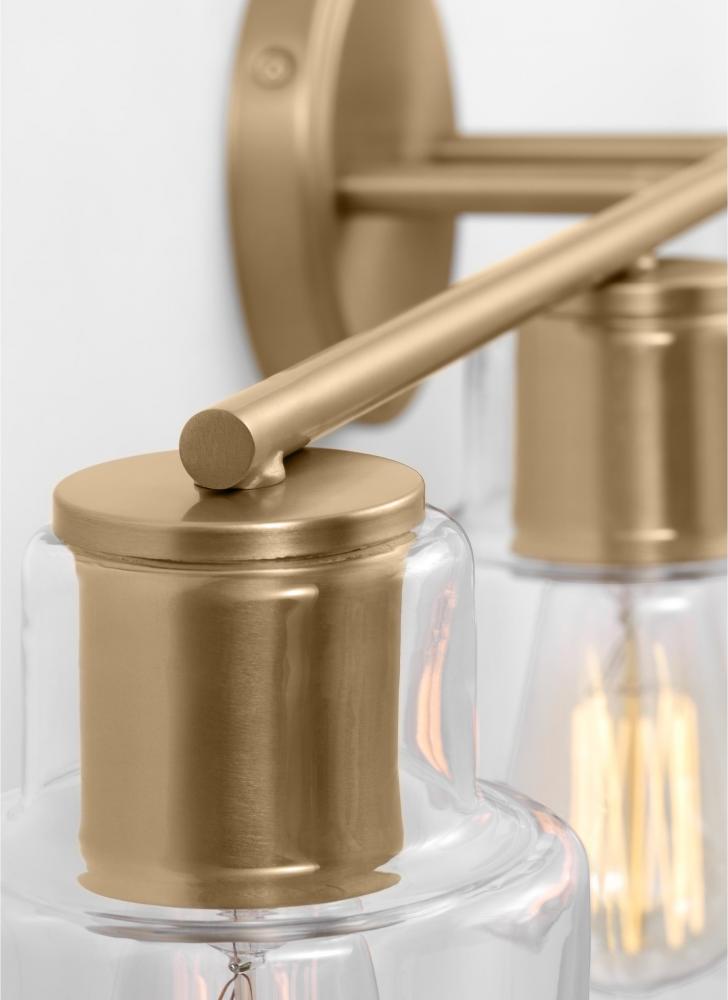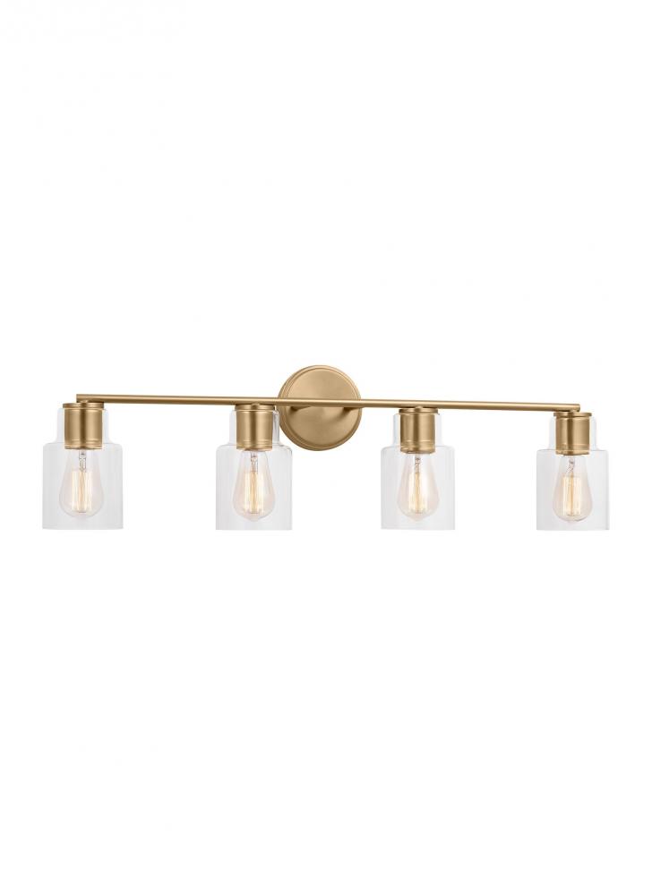 Add a bright burst of light where you need it most with the classic Drew & Jonathan Sayward Four Light Wall / Bath Sconce, featuring a round metal backplate and clear glass shades. Made to coordinate across a broader range of bath hardware and design styles, the Sayward is available in four popular finishes, Brushed Steel, Chrome, Midnight Black, and Satin Brass. This light looks great on its own or installed above a bathroom vanity, and the glass shades make it ideal for filament bulbs. This fixture may be mounted in the up or down position, and is cETL listed for damp locations, making it the perfect lighting solution for any space.
