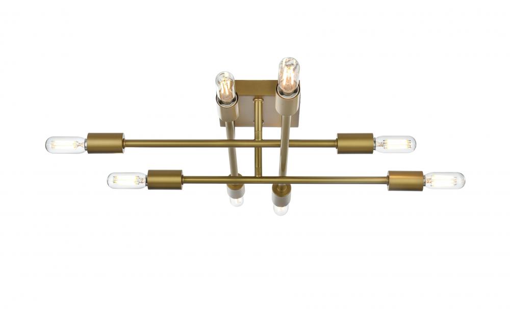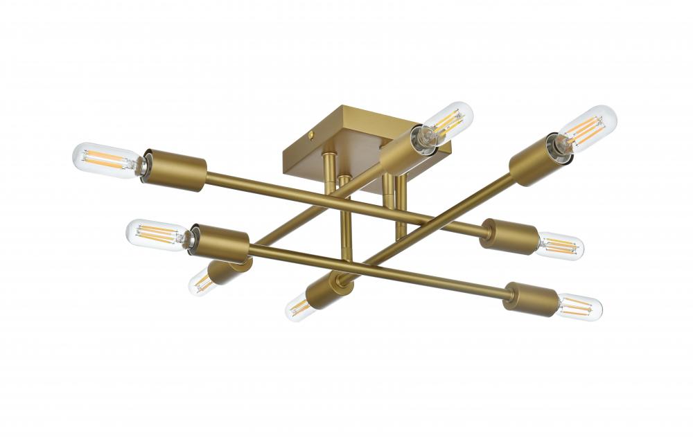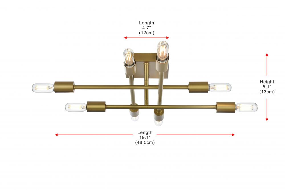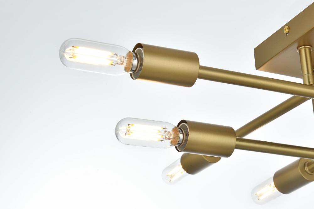 The Script collection flush mount light is an excellent piece to add to your space. The unique shape will stand out as it lights up the room. Available in a satin gold, black, brass, or chrome finish this will add style to your living room, foyer, or kitchen. This product is dimmable and requires eight E12 lamps; light bulbs not included.