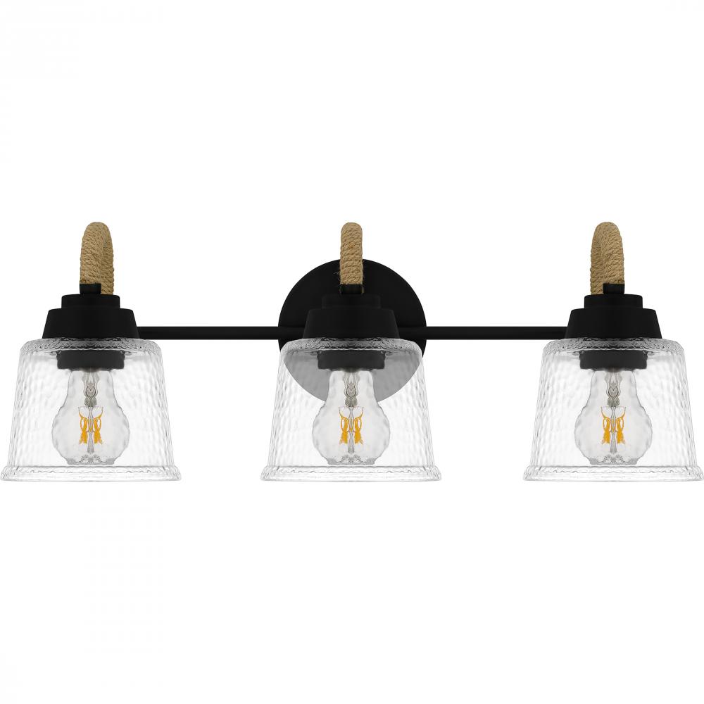 Upgrade any bathroom vanity with the addition of Seabreeze. This coastal-inspired bath light collection features clear hammered glass shades and a matte black finish. A natural looking arm takes the place of traditional metal, adding a nautical feel. Insta