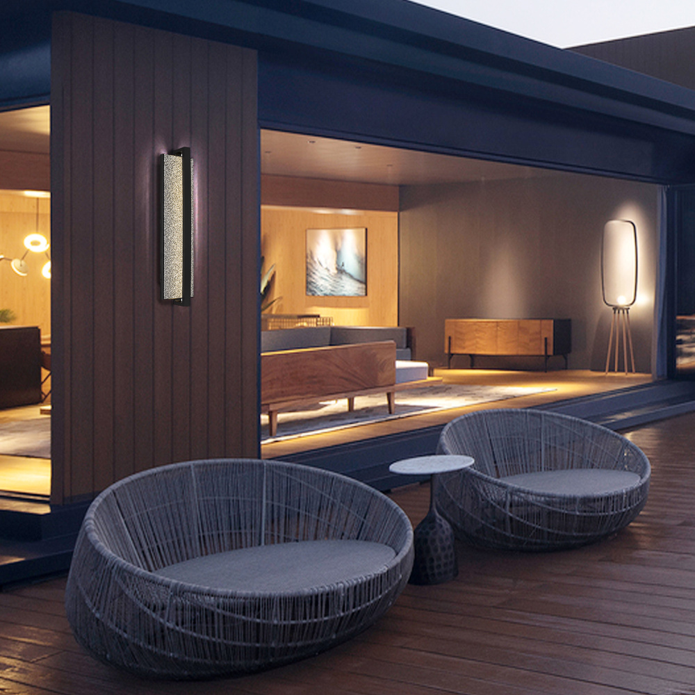 The Seafoam LED Wall Sconce collection showcases a distinctive bubble-formed aluminum design, blending modern elegance with lasting durability. Finished in sand black with silver bubble accents, it makes a bold statement in any interior or exterior space. Featuring 3-CCT customizable lighting, dimmability, a wet location rating, and ADA compliance, this sconce offers both style and versatility.