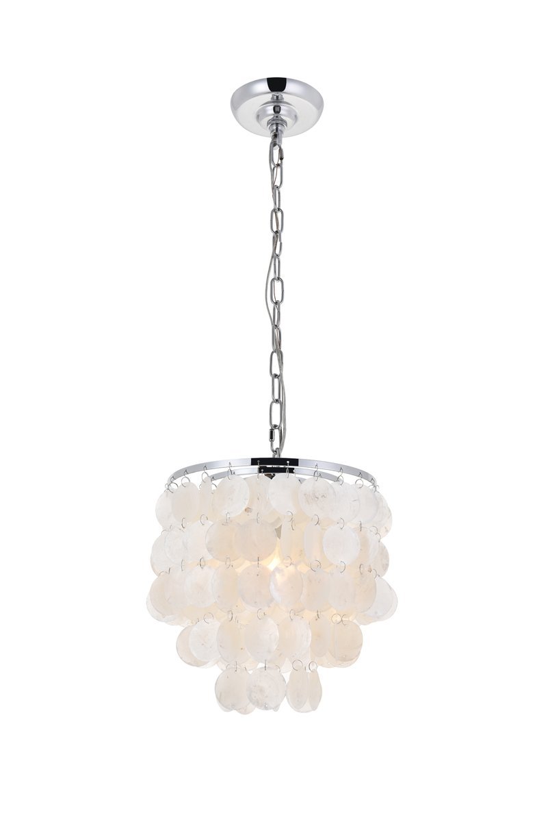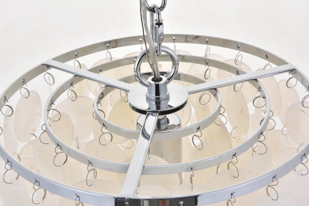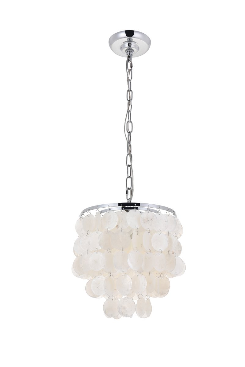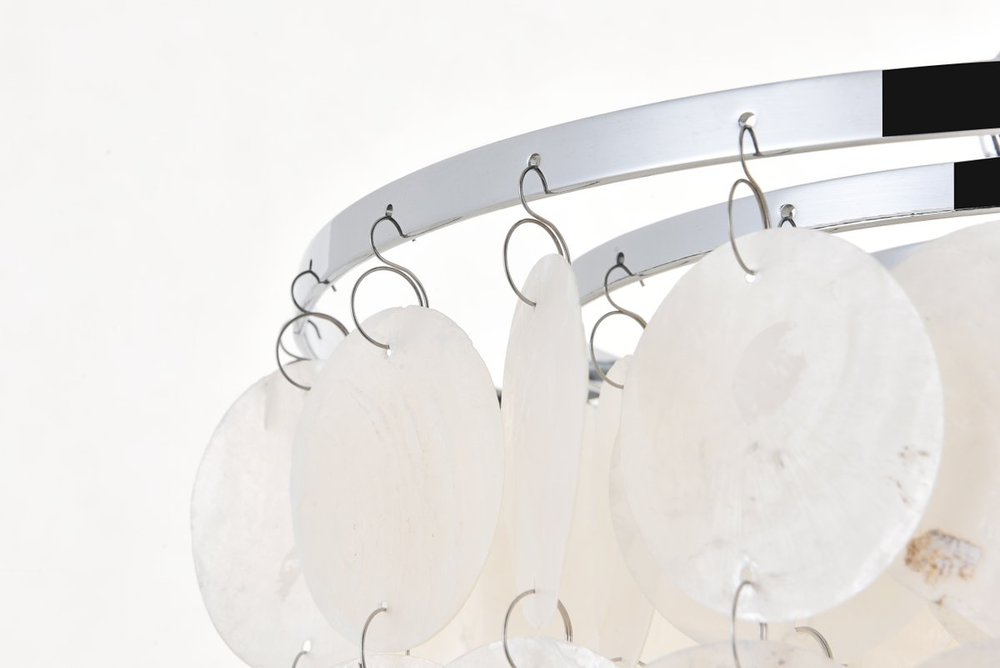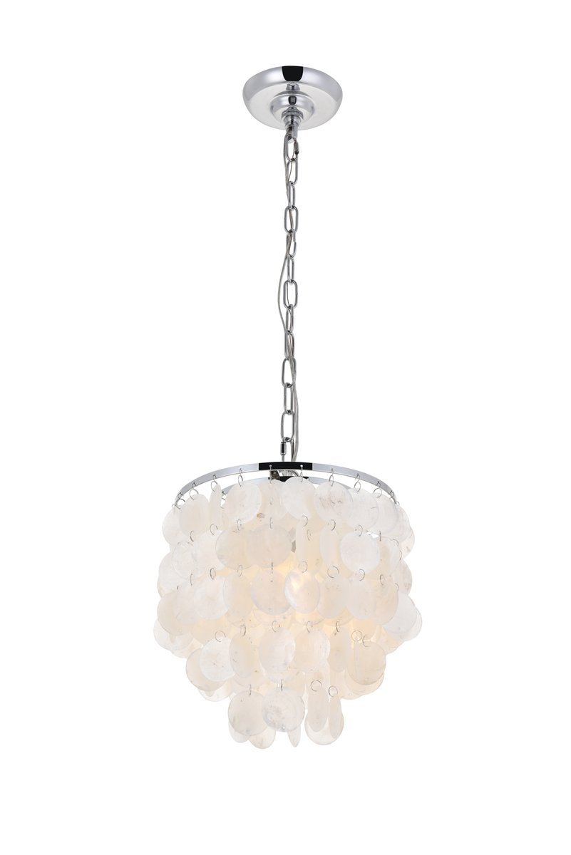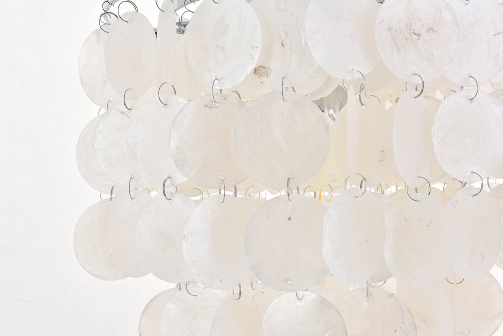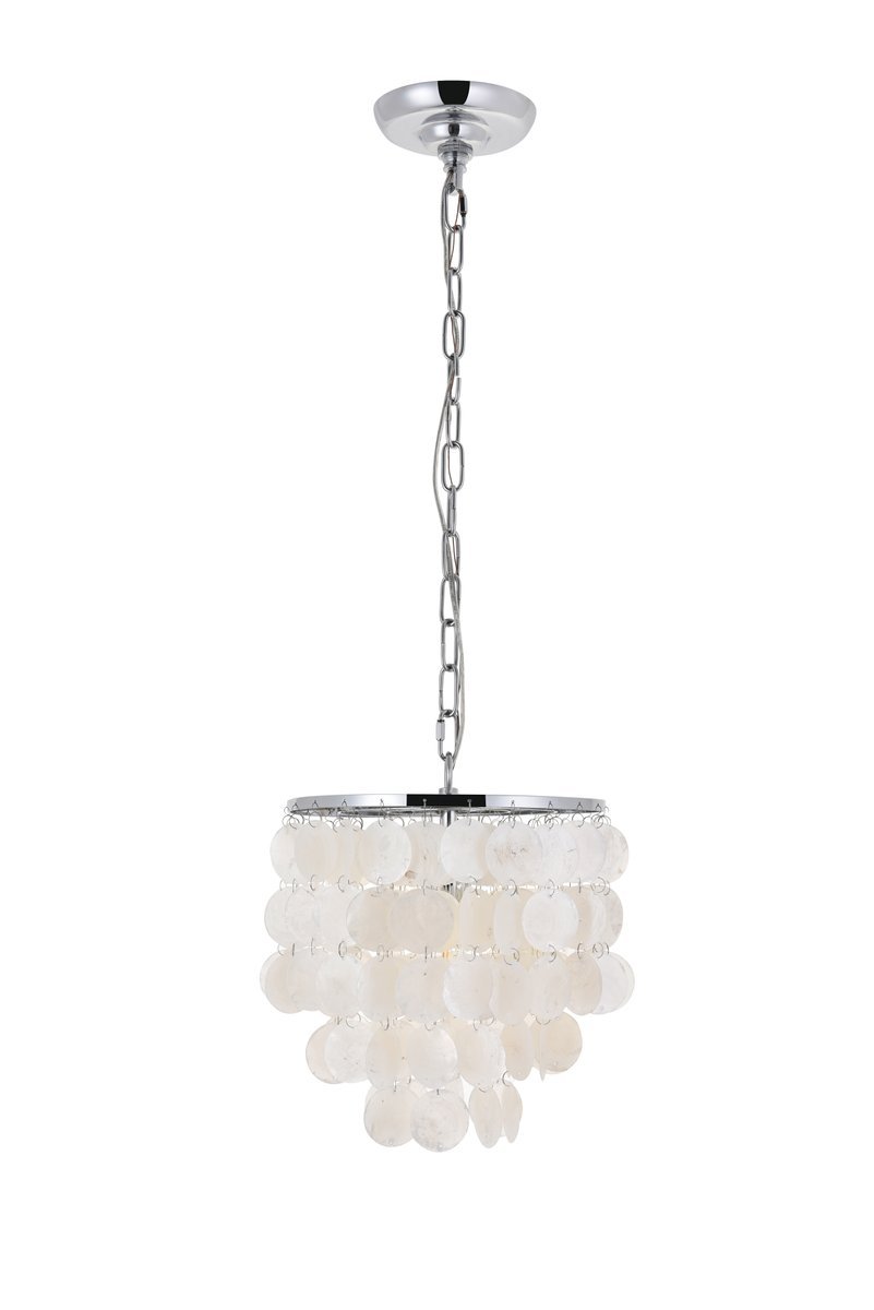 Chrome finish pendant with dreamy off-white shells adorning the tiers