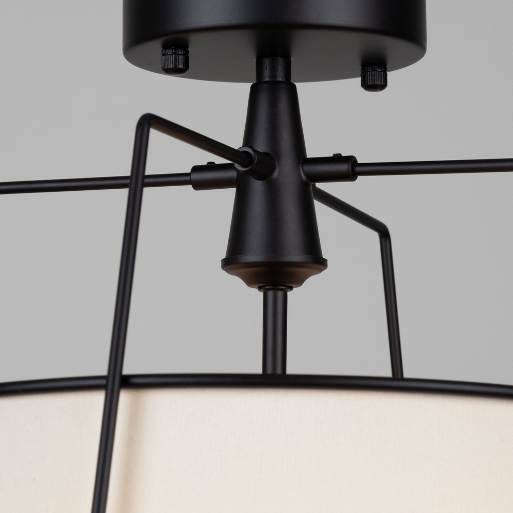 Designed by Steven Sabados (S&C), the Pullman Collection of linen shades is elegantly suspended by black metal frames, seamlessly combining classic and modern design elements. The high-quality linen shades, gently tapered and expertly crafted, diffuse light to create a warm and inviting ambiance. With their timeless elegance and versatile aesthetics, these shades add a touch of sophistication to any space they grace. The model shown is a semi flushmount. (also available with brass metalwork)