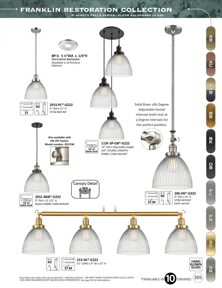 The Franklin Restoration collection is comprised of heavy cast components that give the fixture a heavy Industrial look and feel. We offer the fixture in 10 finishes with a Bare Bulb look or with over 100 possible metal and glass shade options that can cha