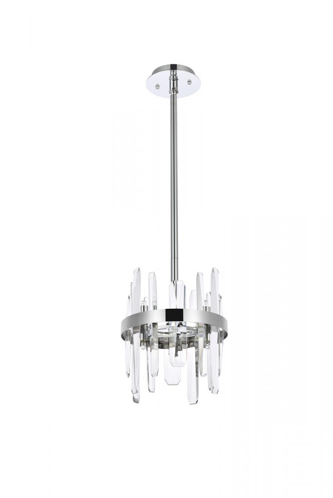 Modern crystal chandelier features top and bottom tier crystal prisms staggered along the wrought iron frame. The thick metal frame wraps around top grade crystal prisms ensure it is built to last, definitely worth it. Hang this work of art and dim the lights for a bit of sophisticated lighting in your home. Get lost in a beautiful light and sleek design available in multiple finishes. The hanging rod conveniently comes with a slope ceiling adapter, perfect for your vaulted or angled ceiling.