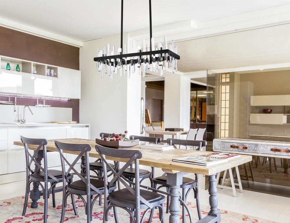 Modern crystal chandelier features top and bottom tier crystal prisms staggered along the wrought iron frame. The thick metal frame wraps around top grade crystal prisms ensure it is built to last, definitely worth it. Hang this work of art and dim the lights for a bit of sophisticated lighting in your home. Get lost in a beautiful light and sleek design available in multiple finishes. The hanging rod conveniently comes with a slope ceiling adapter, perfect for your vaulted or angled ceiling.