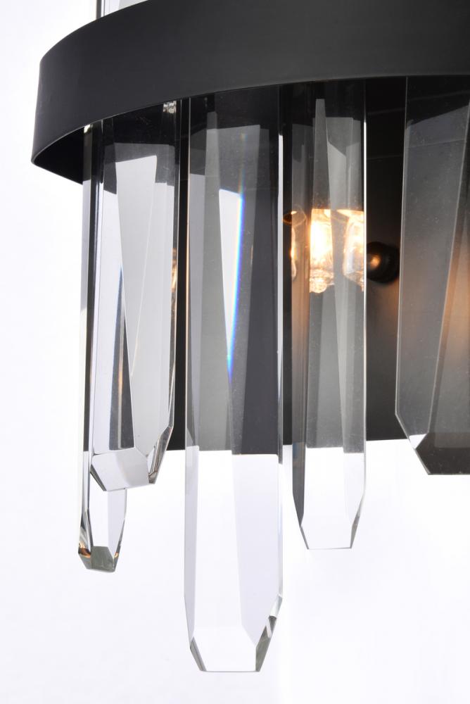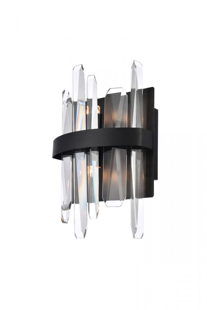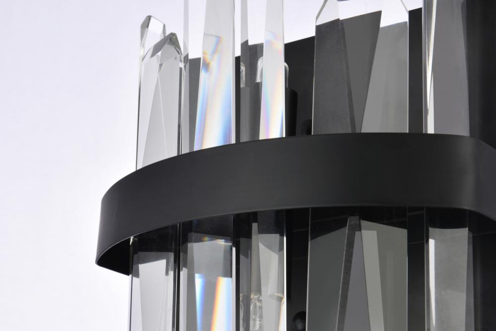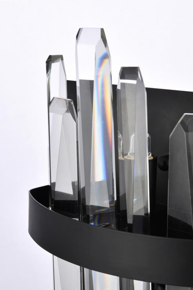 Modern crystal wall sconce features top and bottom tier crystal prisms staggered along a wrought iron frame. The thick metal frame wraps around top grade crystal prisms ensure it is built to last, definitely worth it. Mount this work of art and dim the lights for a bit of sophisticated lighting in your home. Get lost in a beautiful light and sleek design available in multiple finishes.