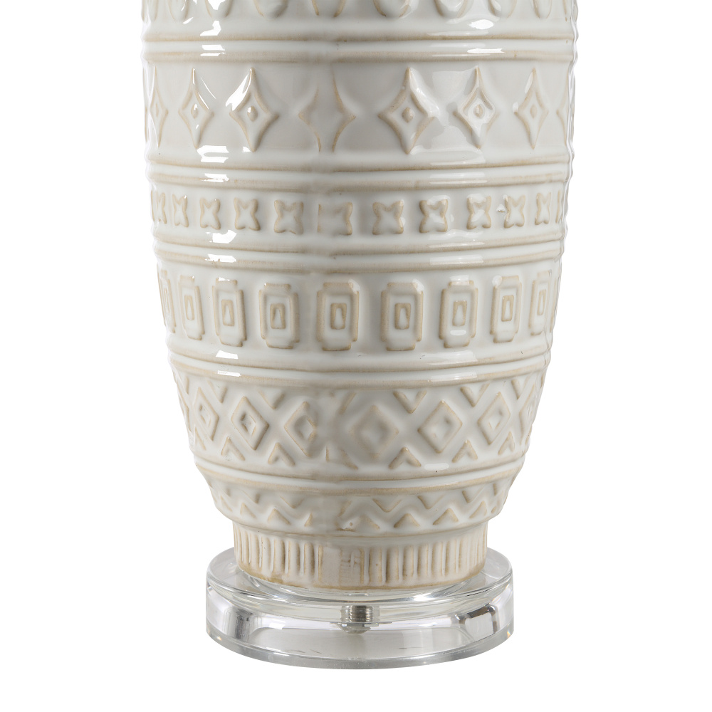 Add texture and an eye-catching element to any space with this stylish ceramic table lamp. Designed with an organic pattern and a timeless white glaze, its body is accented with clear acrylic details for a sparkling touch. Finished with an off-white light-diffusing linen shade, you’ll love the relaxed look it brings.