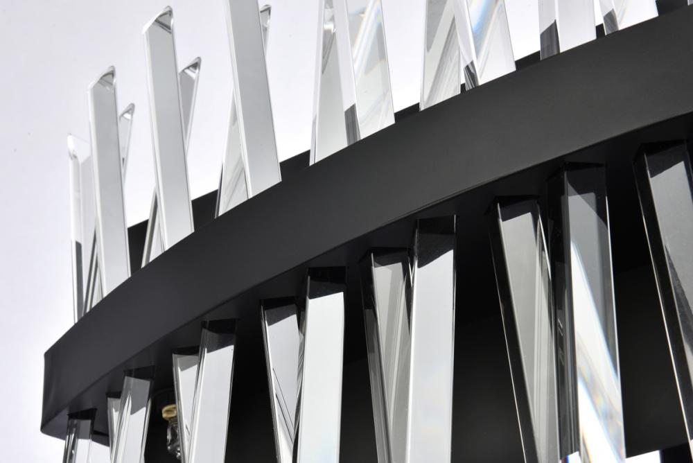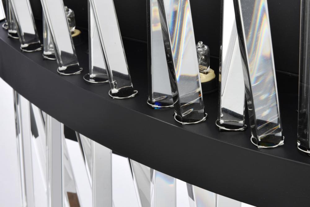 Modern crystal wall sconce features top and bottom tier crystal prisms staggered along a wrought iron frame. The thick metal frame wraps around top grade crystal prisms ensure it is built to last, definitely worth it. Mount this work of art and dim the lights for a bit of sophisticated lighting in your home. Get lost in a beautiful light and sleek design available in multiple finishes.