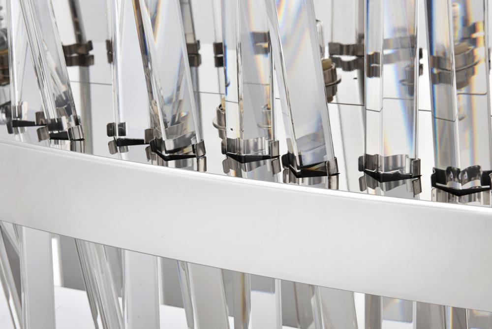Rows of clear staggered glass rods embedded into the thick iron frame