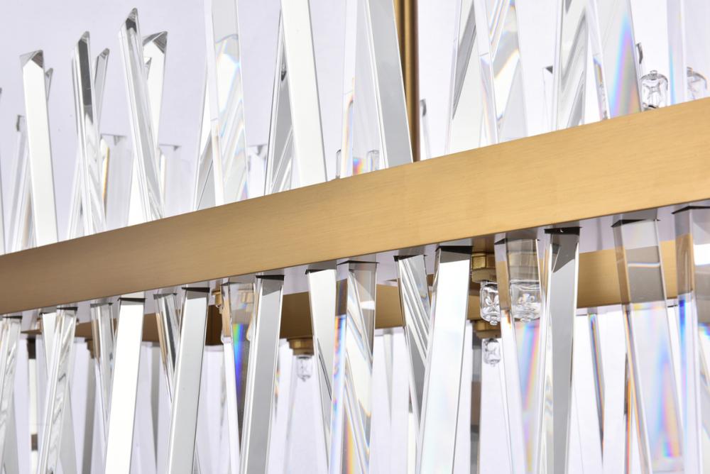 Modern crystal chandelier features top and bottom tier crystal prisms staggered along the wrought iron frame. The thick metal frame wraps around top grade crystal prisms ensure it is built to last, definitely worth it. Hang this work of art and dim the lights for a bit of sophisticated lighting in your home. Get lost in a beautiful light and sleek design available in multiple finishes. The hanging rod conveniently comes with a slope ceiling adapter, perfect for your vaulted or angled ceiling.
