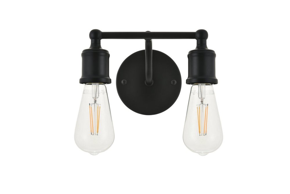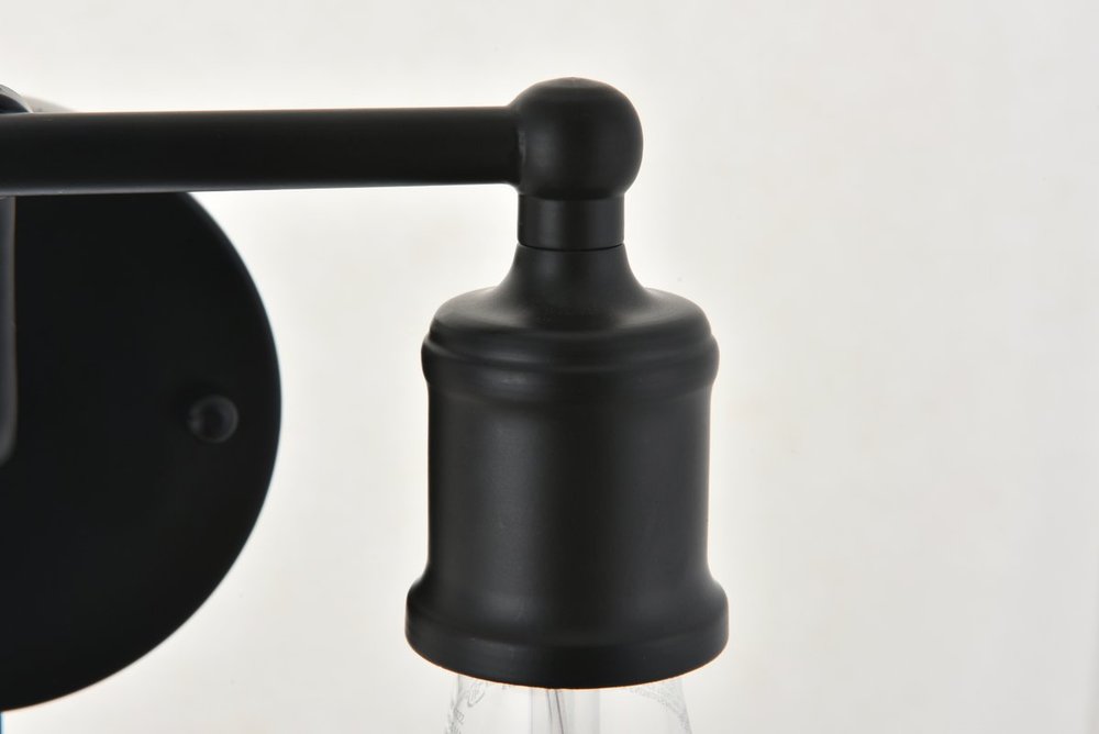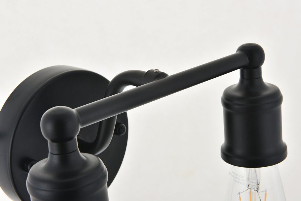 The classical elegance of the Serif collection wall lamp in a black finish brings graceful allure. The arms--reminiscent of a classical font-- supports the 2 lights that emit a reassuring brilliance, and its gentle presence makes it a wonderful fixture to greet your guests at the entry way, illuminate your cabinets in the living room, or shine in the powder room.