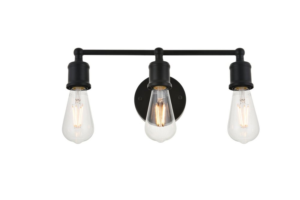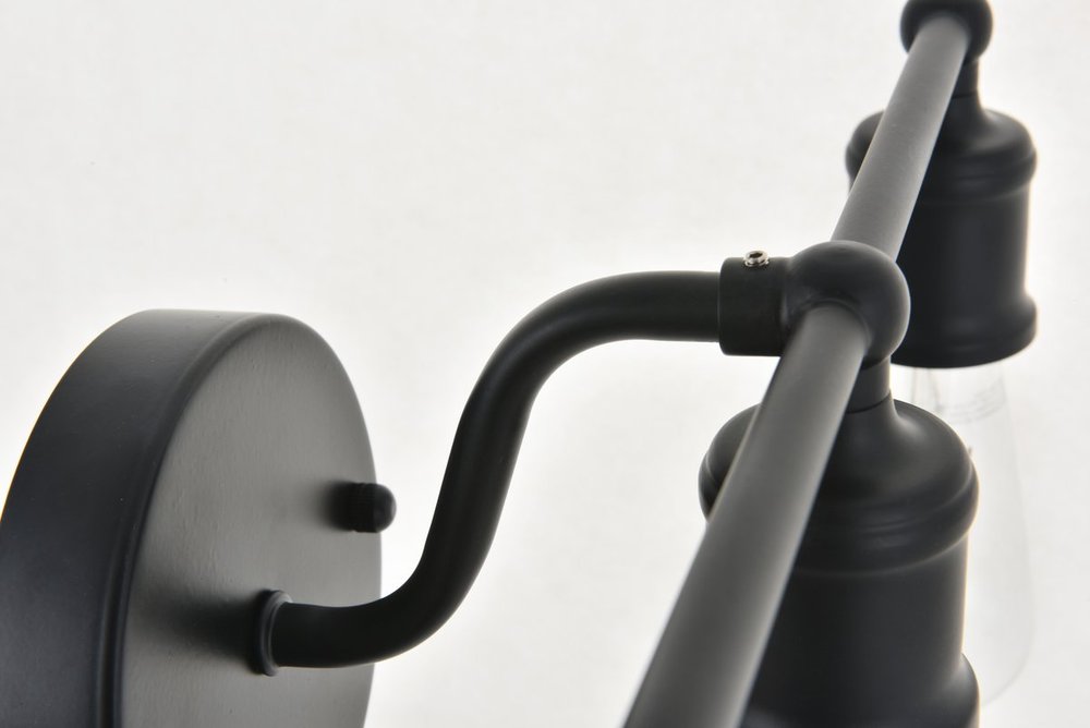 The classical elegance of the Serif collection wall lamp in a black finish brings graceful allure. The arms--reminiscent of a classical font-- supports the 3 lights that emit a reassuring brilliance, and its gentle presence makes it a wonderful fixture to greet your guests at the entry way, illuminate your cabinets in the living room, or shine in the powder room.