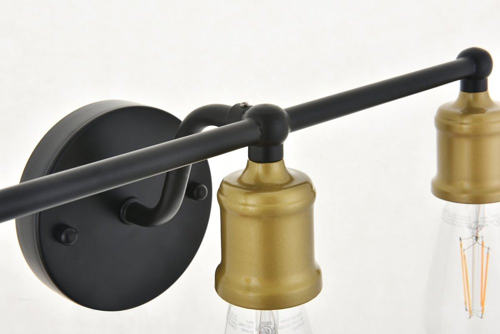 The classical elegance of the Serif collection wall lamp in a brass and black finish brings graceful allure. The arms--reminiscent of a classical font-- supports the 3 lights that emit a reassuring brilliance, and its gentle presence makes it a wonderful fixture to greet your guests at the entry way, illuminate your nightstands in the bedrooms, or shine in the powder room.