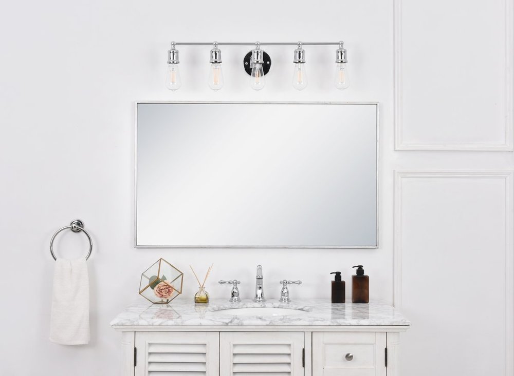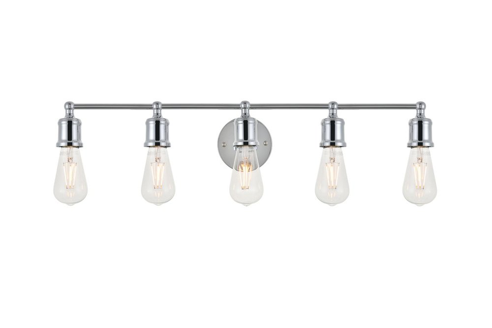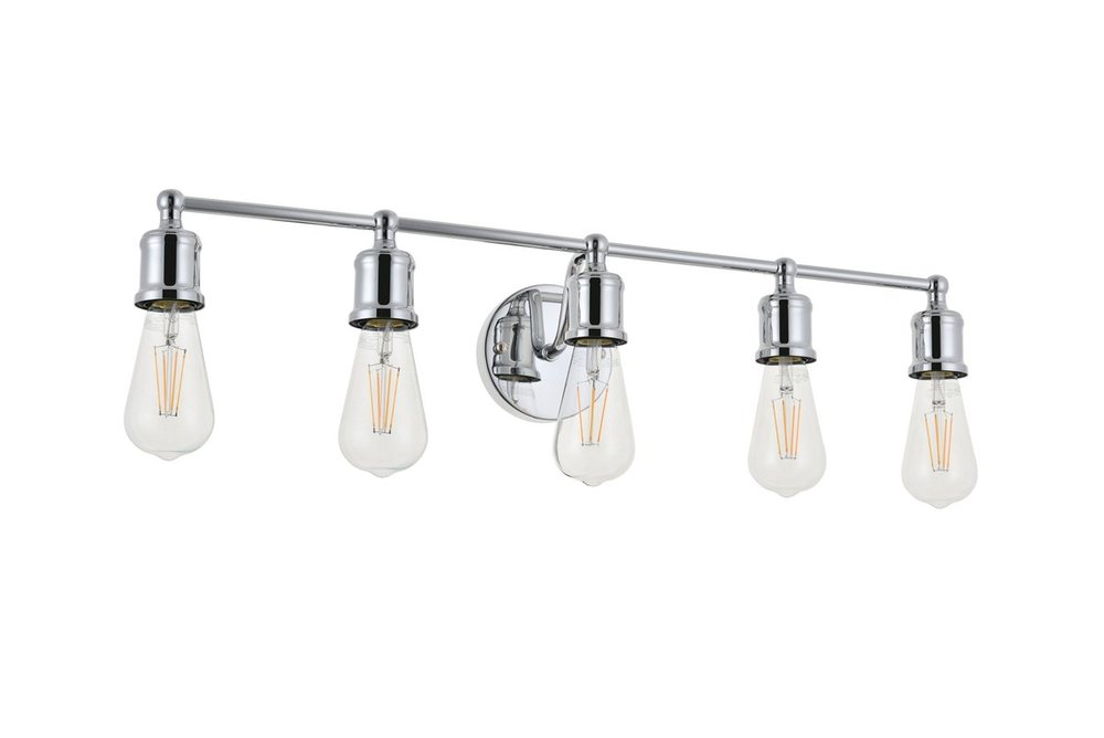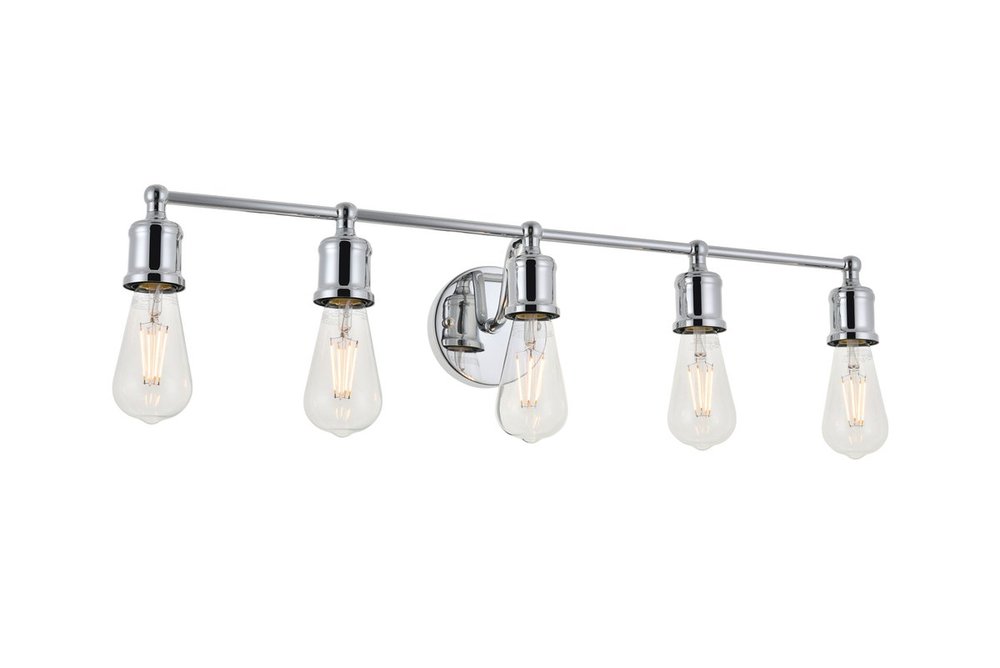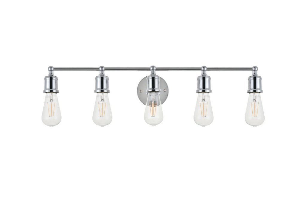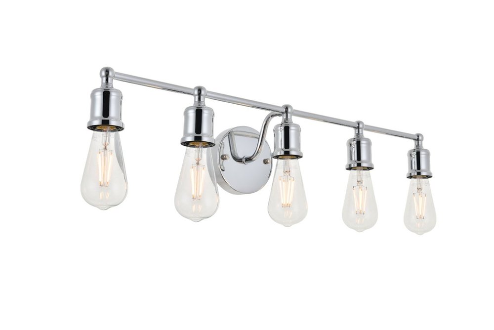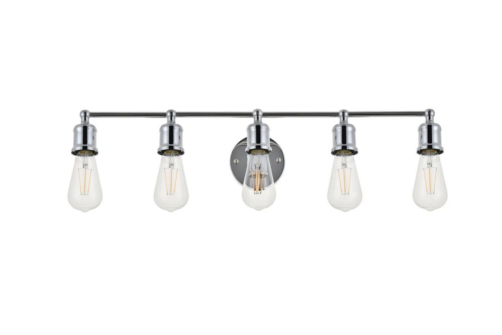 The classical elegance of the Serif collection wall lamp in a chrome finish brings graceful allure. The arms--reminiscent of a classical font-- supports the 5 lights that emit a reassuring brilliance, and its gentle presence makes it a wonderful fixture to greet your guests at the entry way, illuminate your cabinets in the living room, or shine in the powder room.