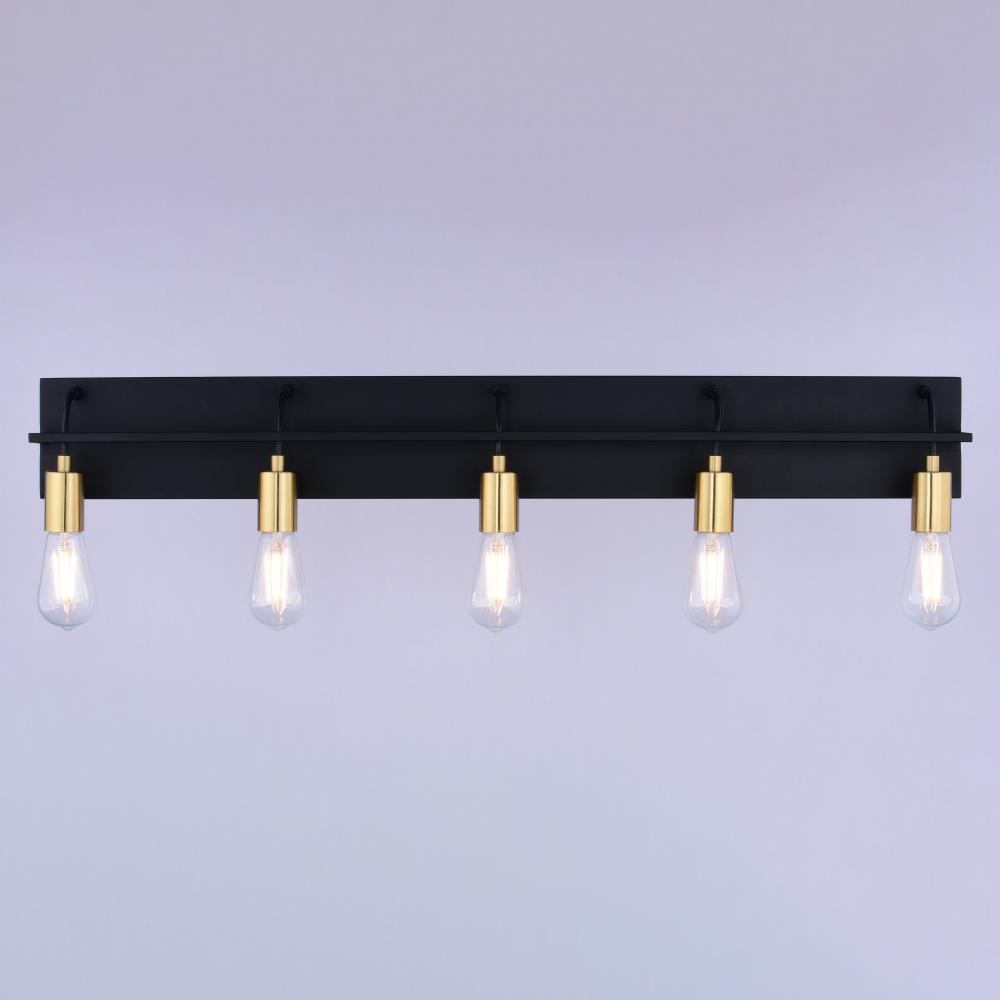 Transform your bathroom into a luxury retreat with the Seward Park vanity light. Its large 5-light design, featuring a black backplate with satin brass accents, creates a modern industrial-chic statement above any double sink vanity or mirror. The exposed bulbs (not included) add a touch of style while the full backplate ensures even, flattering illumination.