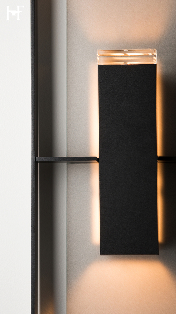 A tall, handsome wall mount to enhance the exterior of any home or building, this Shadow Box is 34"" in height with an ADA compliant profile. This Dark Sky Friendly version allows us to truly appreciate the night sky's constellations by impeding uplight and directing the light downward. True to its namesake, the Shadow Box is created by its aluminum frame and backplate, offered with a two-toned finish option from among HF's robust, AAMA 2604-rated Coastal Outdoor Collection.
