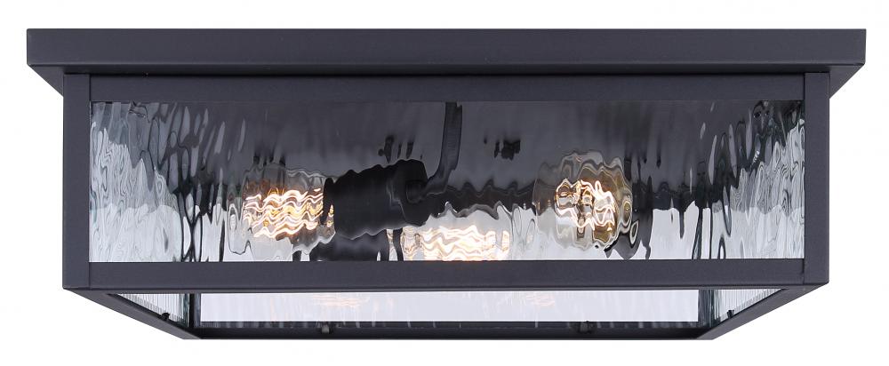 The Shana outdoor flush mount is a sleek and sophisticated addition to your outdoor space. Perfect for illuminating entrances or patios, this modern fixture brings both style and functionality to your home. The clean rectangular design of Shana adds a touch of contemporary flair, while its seeded glass panels and sleek black finish create a warm and inviting ambiance.