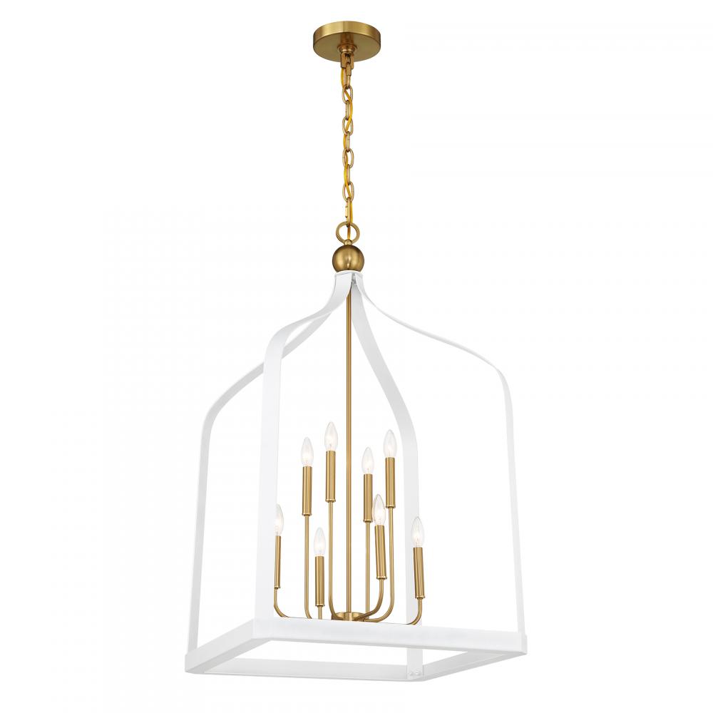 Sheffield 8-Light Pendant in White with Warm Brass Accents